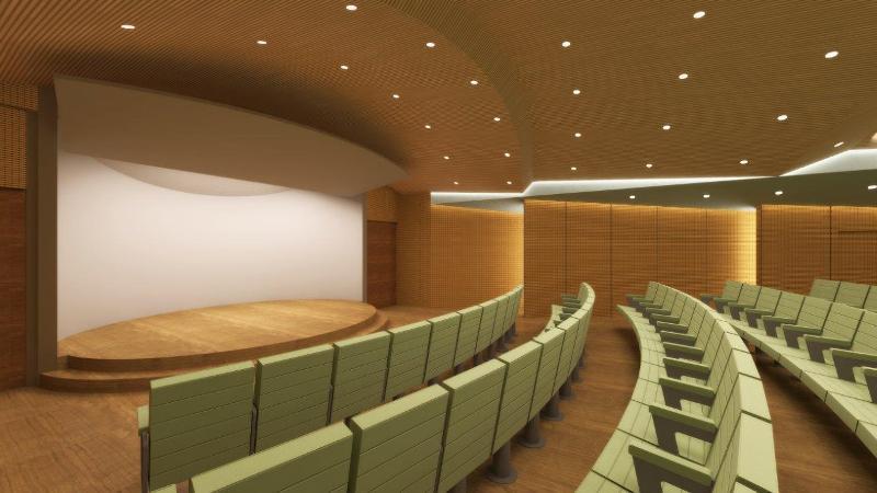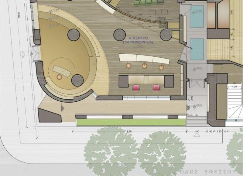 Ζ. Αίθουσα πολλαπλών χρήσεων, σε συνδυασμό με χώρο υποδοχής – φουαγιέ (που θα περιλάβει υπηρεσίες όπως γραμματειακή υποστήριξη ενώ θα μπορεί να λειτουργεί παράλληλα ως εκθεσιακός χώρος) και κυλικείο.