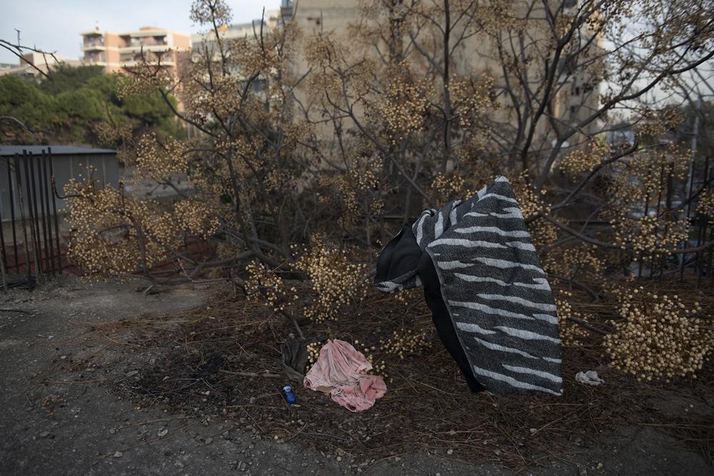 Η κατάσταση στον χώρο που «υποδέχεται» εδώ και έναν χρόνο διαρκώς πρόσφυγες και μετανάστες είναι άθλια. Οι συνεχείς έφοδοι της αστυνομίας έχουν απομακρύνει και τους λίγους εθελοντές που είχαν μείνει να βοηθούν τους διερχόμενους, μοιράζοντας φαγητό και καθαρίζοντας το δάπεδο. Τώρα όλα είναι βρώμικα. Οι ιδιοκτήτες του χώρου από την πλευρά τους τοποθετούν συνεχώς λαμαρίνες για να κλείσουν την πρόσβαση στους κατατρεγμένους. Ωστόσο πολλές γωνιές του τεράστιου νεόδμητου ατελούς κτιρίου έχουν μετατραπεί σε… υπνοδωμάτια.