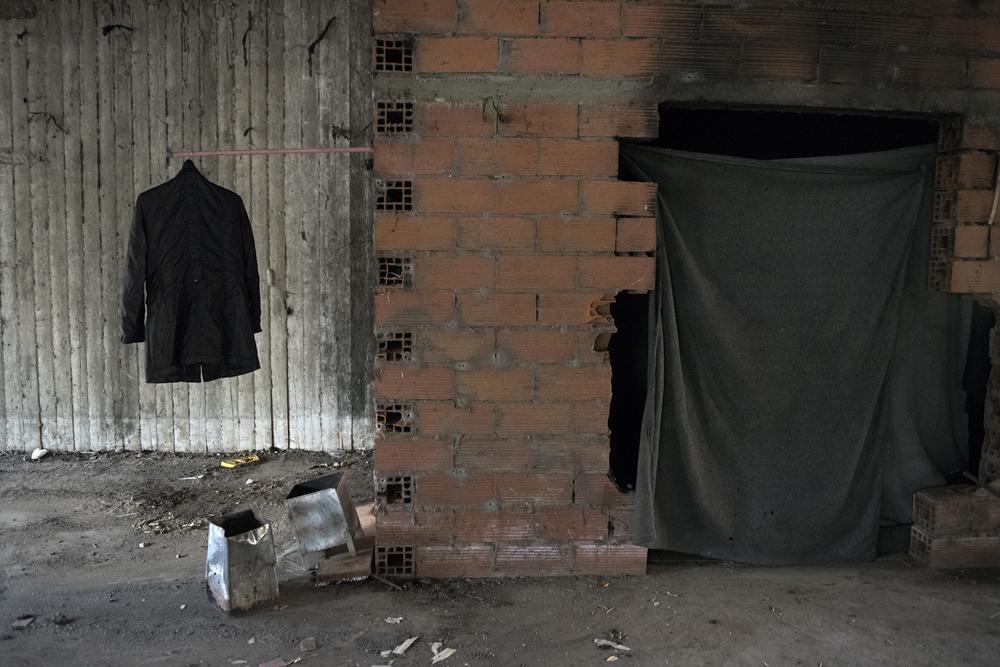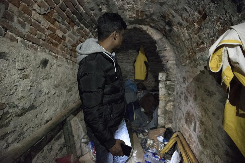Χαρακτηριστικός είναι ο χώρος στο υπόγειο, όπου κοιμούνται κάθε βράδυ μέχρι και δέκα μετανάστες. Είναι σαν δωμάτιο που βρίσκεται κάτω από τη σκάλα του κτιρίου. Στην είσοδό του τοποθετήθηκαν δύο κουβέρτες, που «κόβουν» το κρύο. Την παρουσία ανθρώπων προδίδει ένα κρεμασμένο μπουφάν ακριβώς δίπλα από την είσοδο, τοποθετημένο έτσι για να στεγνώσει από το νερό της βροχής. Οι μετανάστες λένε ότι είναι πολλά τα σημεία όπου καθημερινά βρίσκουν καταφύγιο για να κοιμηθούν. Εκτός του κτιρίου στα Ξυλάδικα, το δεύτερο μεγάλο υπνωτήριο των άστεγων μεταναστών βρίσκεται στο ΙΚΑ Πύλης Αξιού. Πίσω από τα δικαστήρια και δίπλα στα τείχη της πόλης. Ακόμη και μέσα σ’ αυτά…