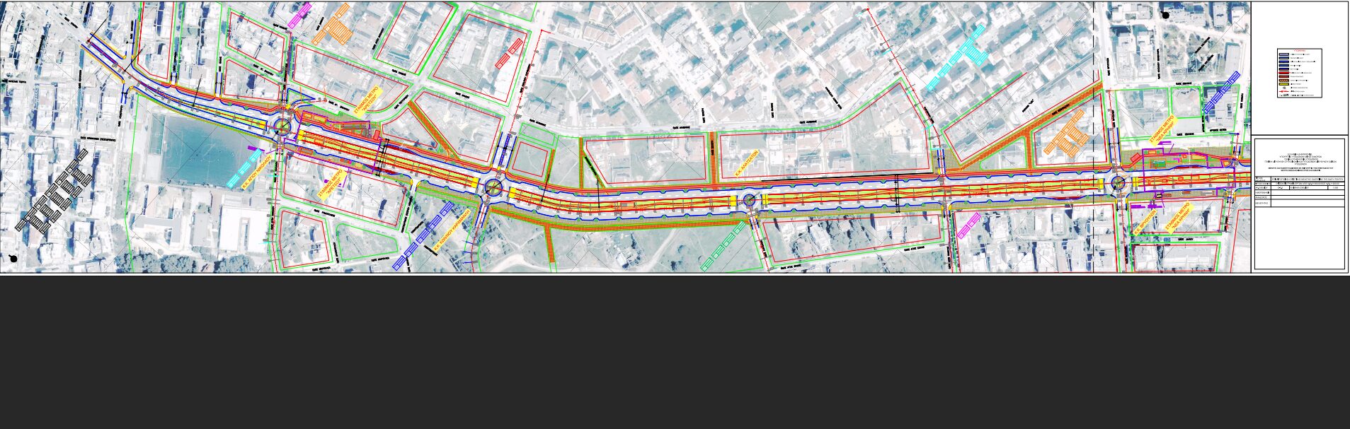 Στις συμβολές των υπόλοιπων κάθετων οδών (εκτός κόμβων), η κεντρική νησίδα της οδού δε θα διακόπτεται.
