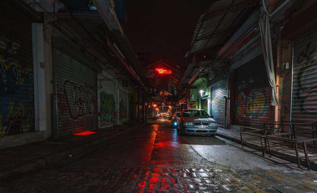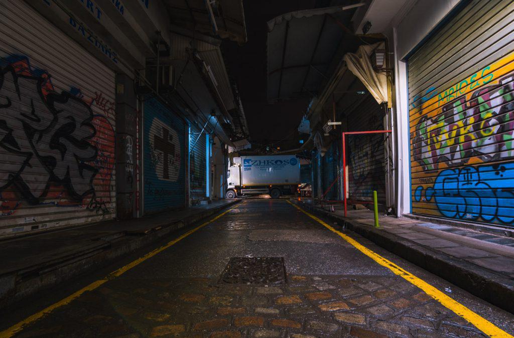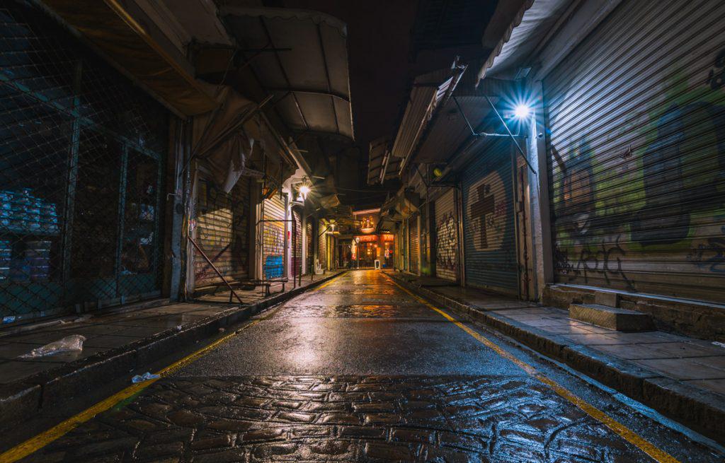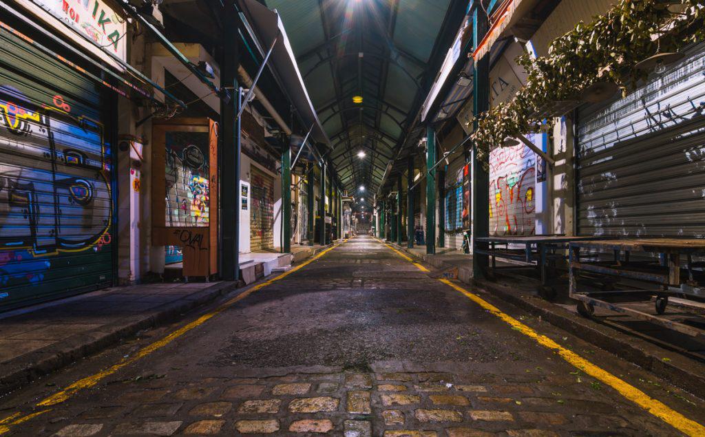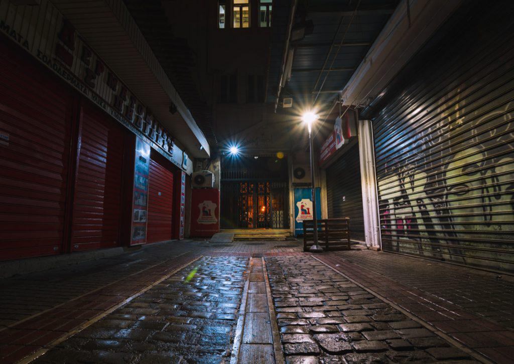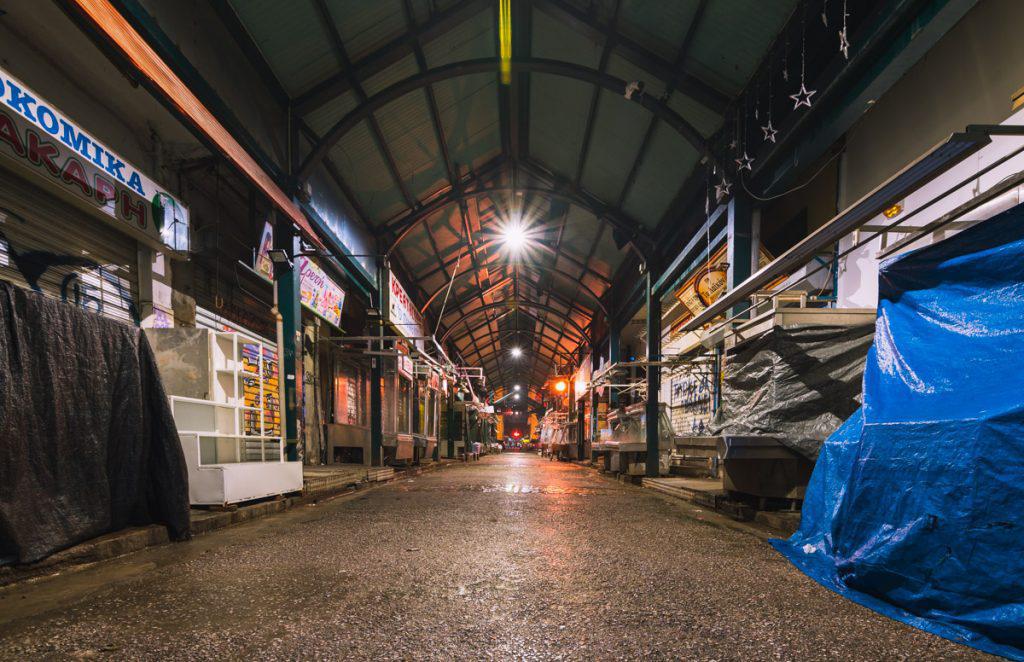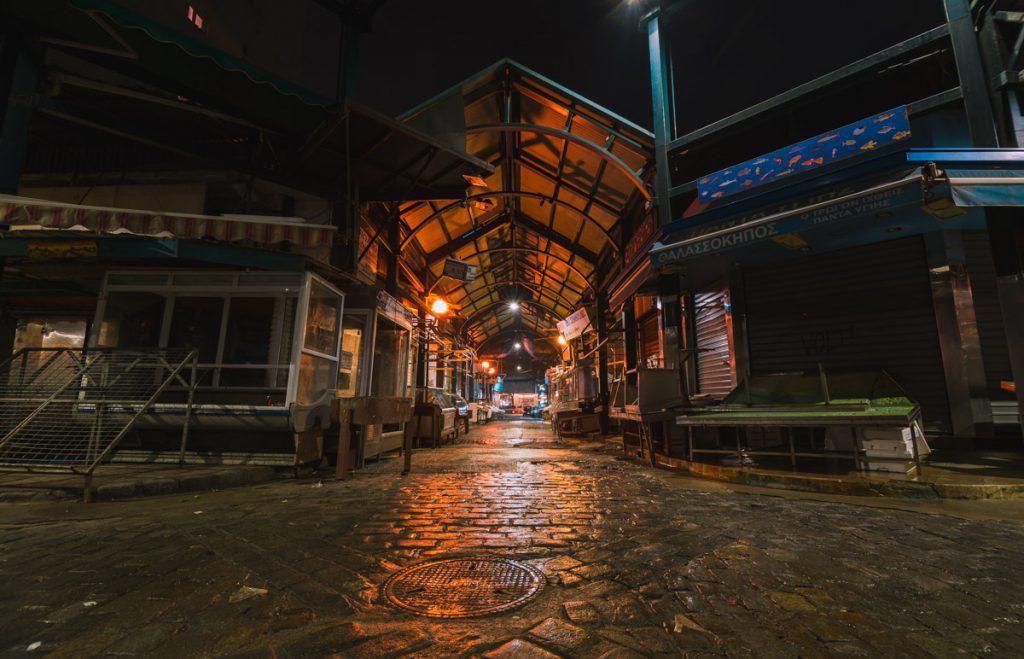 Η αγορά της πόλης όταν φεύγουν όλοι και ερημώνει.