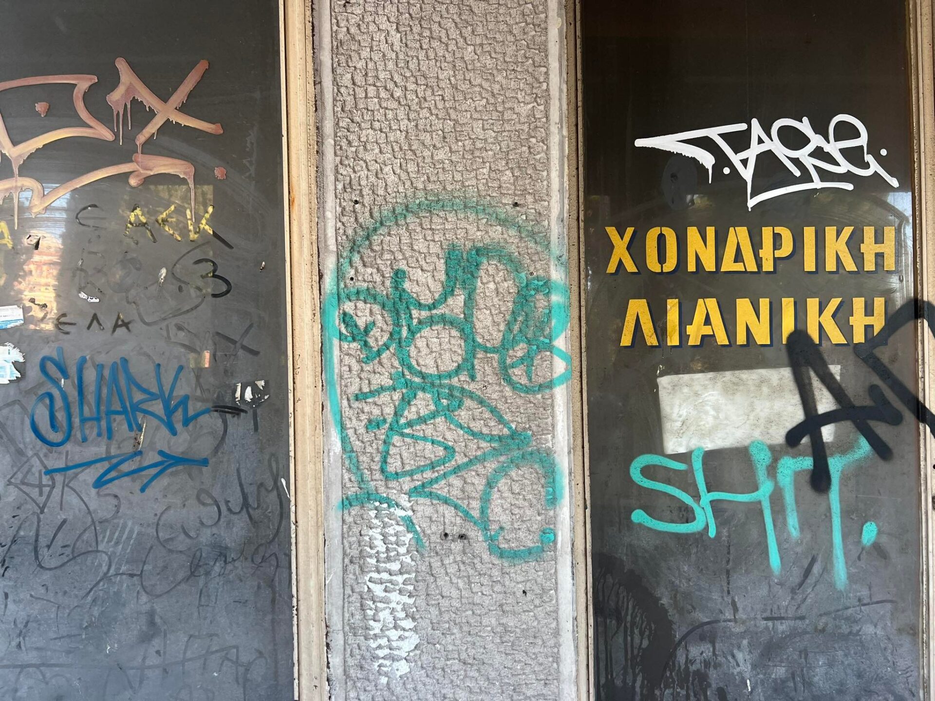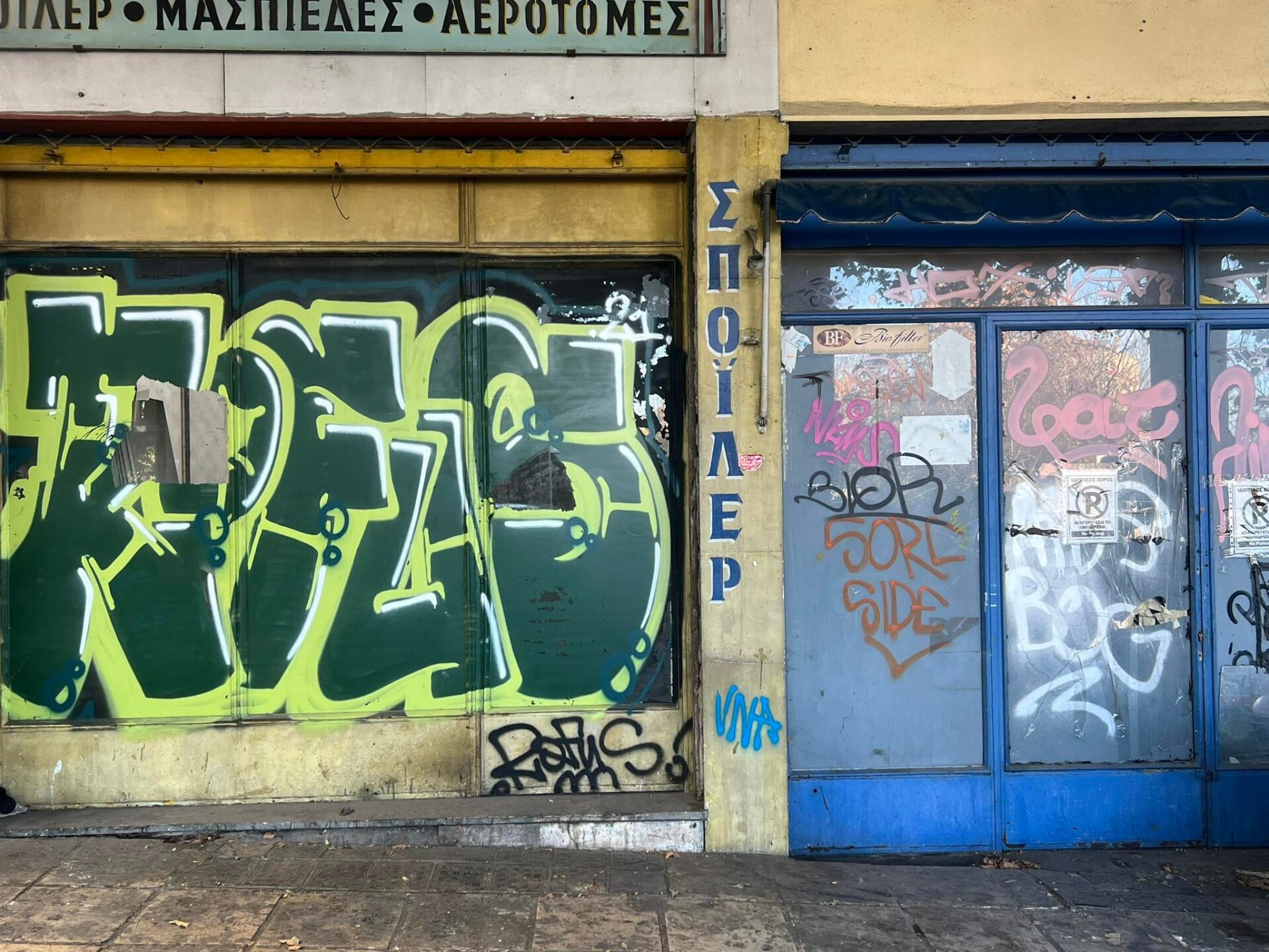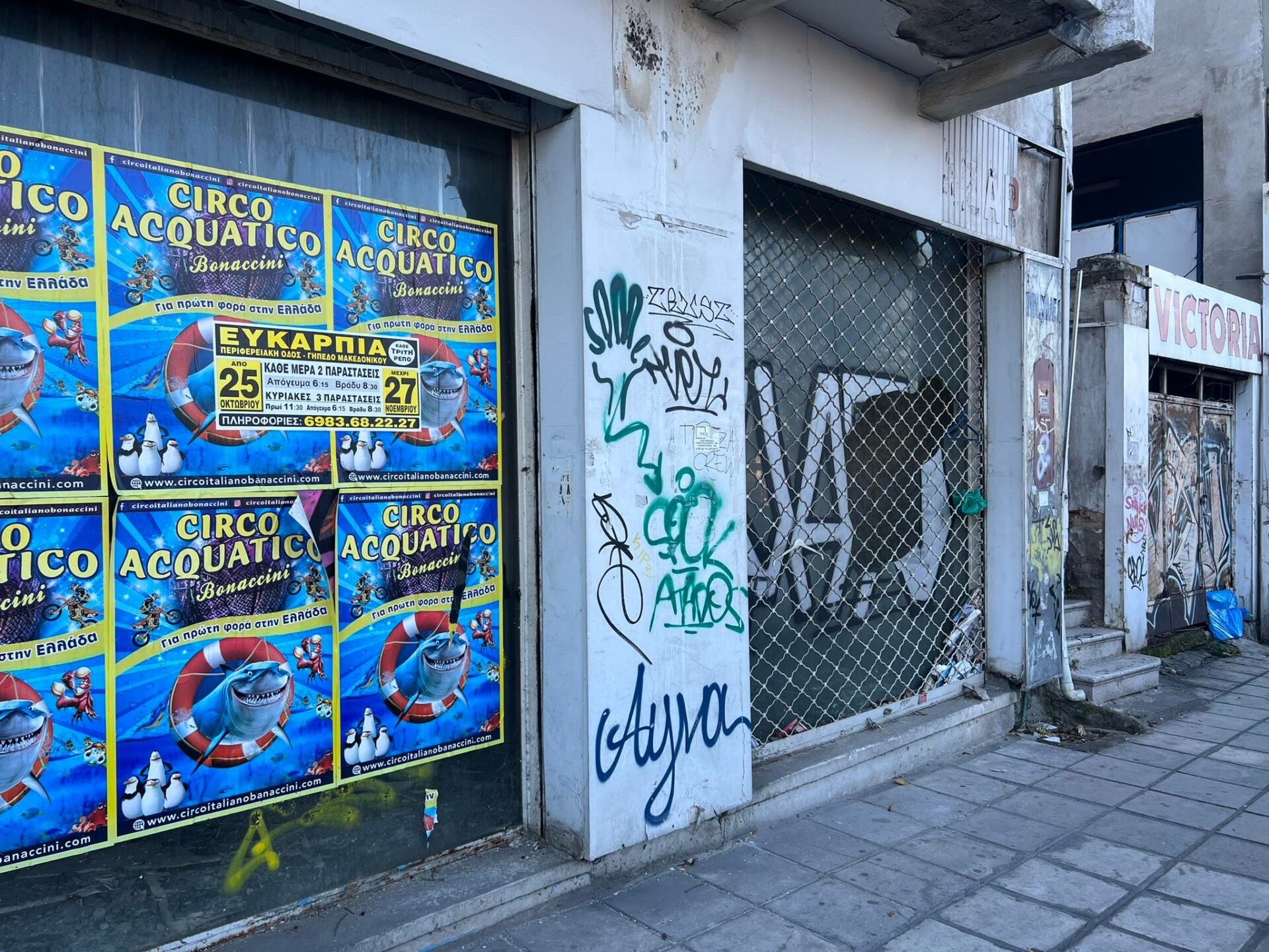 Οι άσχημες εικόνες που αντικρίζουν πεζοί και οδηγοί δεν βρίσκονται μόνο κοιτώντας κάτω αλλά και στις βιτρίνες των κλειστών μαγαζιών. Δεξιά και αριστερά του δρόμου, αλλά και στη διαχωριστική νησίδα υπάρχουν αμέτρητες αφίσες.