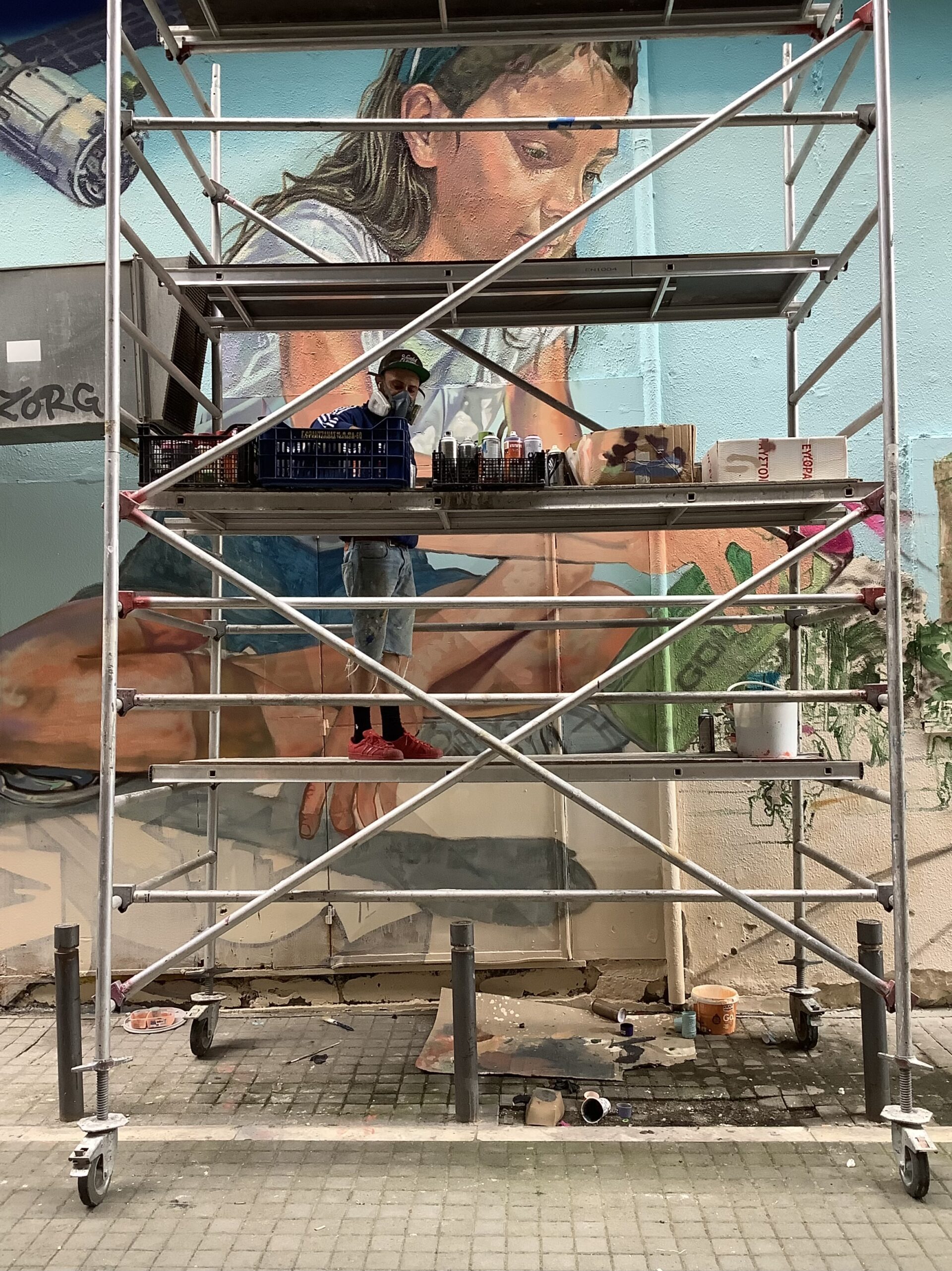 Ο Θεσσαλονικιός street artist, μεγαλωμένος στον Εύοσμο, που σήμερα ζει στην Κύπρο και ταξιδεύει τον κόσμο, κατέληξε και πάλι στην πατρίδα του και συγκεκριμένα στον τοίχο της οδού Ρωμανού στο κέντρο της πόλης.