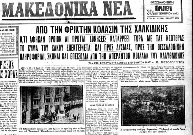 Δείγμα του έντονου φόβου που επικρατούσε στη Θεσσαλονίκη στον απόηχο της μεγάλης τραγωδίας της Χαλκιδικής είναι και τα όσα αναφέρονται στην εφημερίδα «Μακεδονικά Νέα» όπου στο πρωτοσέλιδό της σημειώνει:
