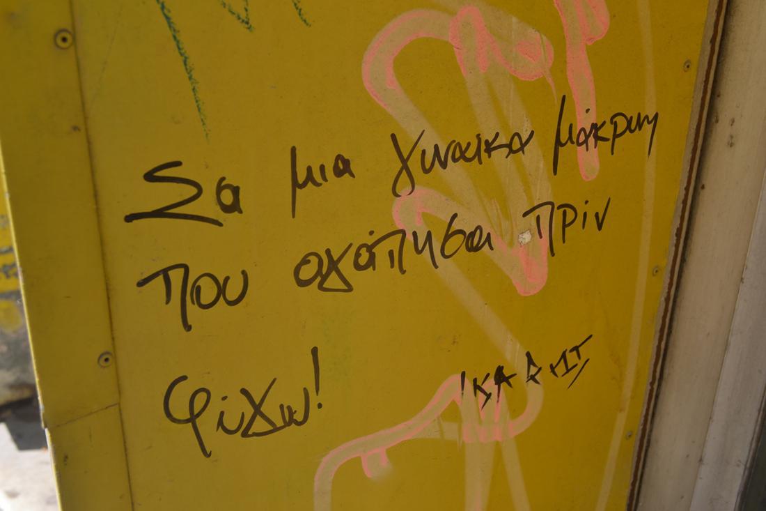 Ένας στίχος που κολλά στο μυαλό, ένας μαρκαδόρος στην τσέπη και το αποτέλεσμα είναι το παρακάτω. Το συναντήσαμε στην Κασσάνδρου, είναι από το τραγούδι «Το Γράμμα»: