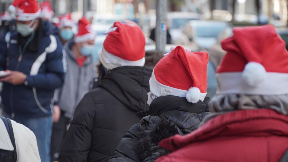 Οι εθελοντές είχαν ετοιμάσει πακέτα με μερίδες φαγητού, ευχετήριες κάρτες και χριστουγεννιάτικους σκούφους για όλους, καθώς και εξατομικευμένα δώρα για τις γυναίκες, τους άντρες και τα παιδιά. Ενώ τα πακέτα μοιράζονταν, οι άνθρωποι σερβίρονταν γλυκά και ζεστά ροφήματα από τα τραπέζια που είχαν στηθεί, συζητούσαν και αντάλλασσαν ευχές για όμορφες μέρες.