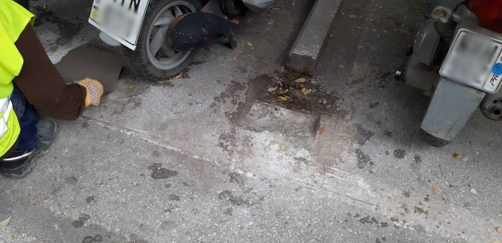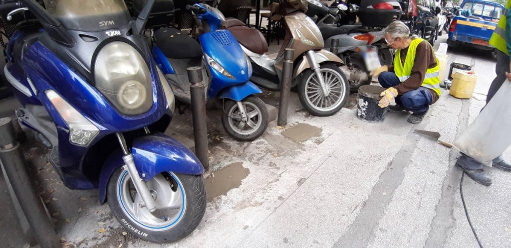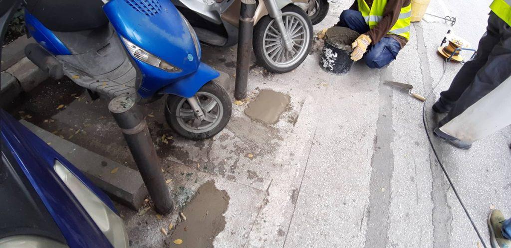 Πιο συγκεκριμένα στο σημείο εργάζεται από νωρίς το πρωί συνεργείο του τομέα Βιώσιμης Κινητικότητας και Δικτύων αφαιρώντας τσιμεντένια κολονάκια – διαχωριστικά στις θέσεις στάθμευσης μηχανών, έτσι ώστε να διαμορφωθούν μεγαλύτερες θέσεις.