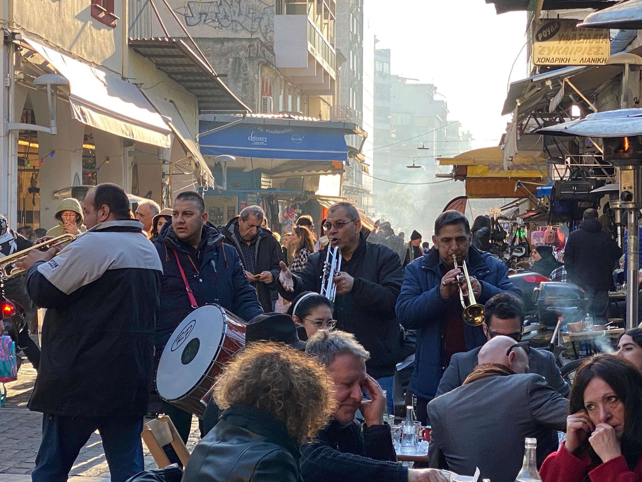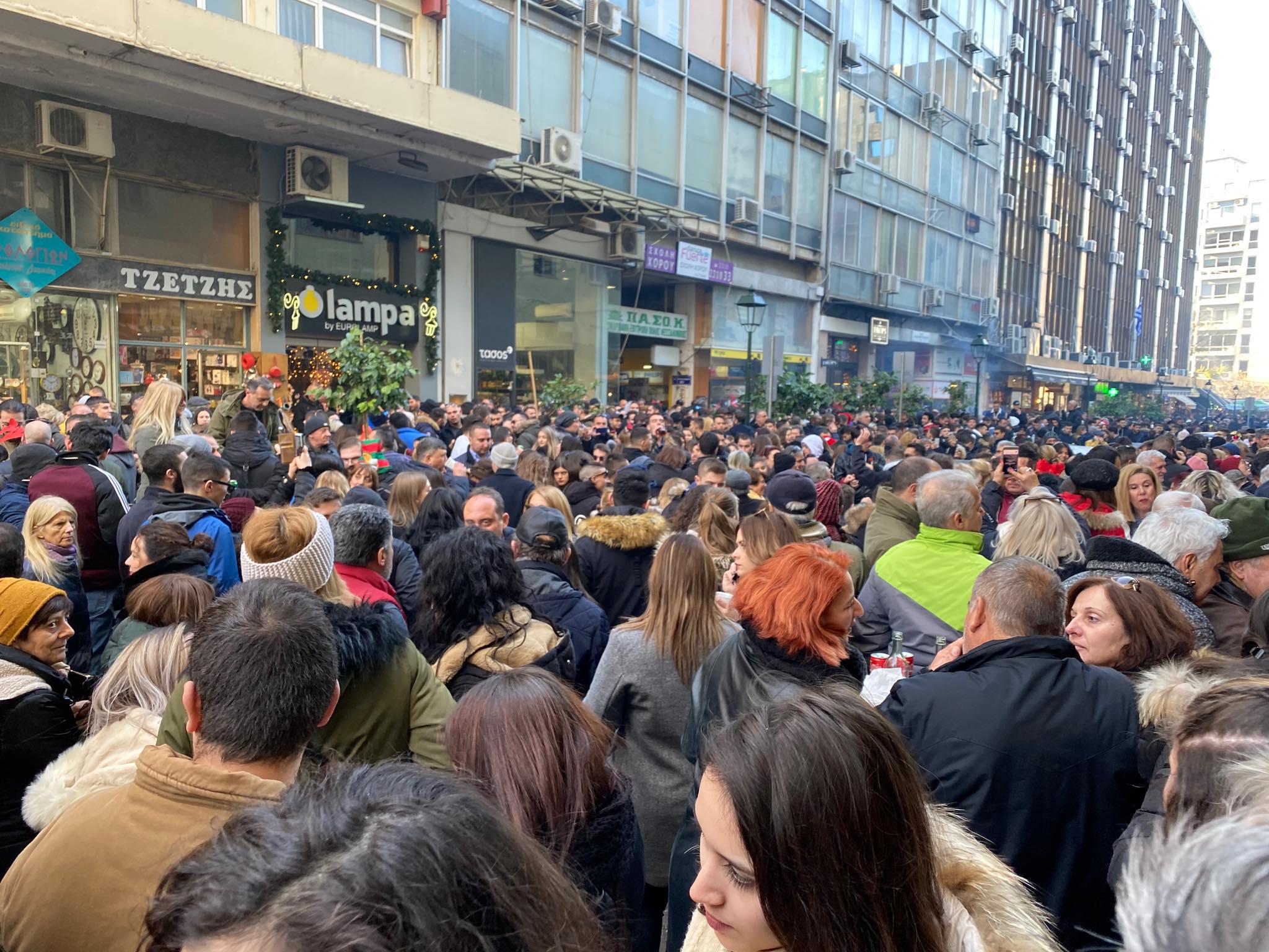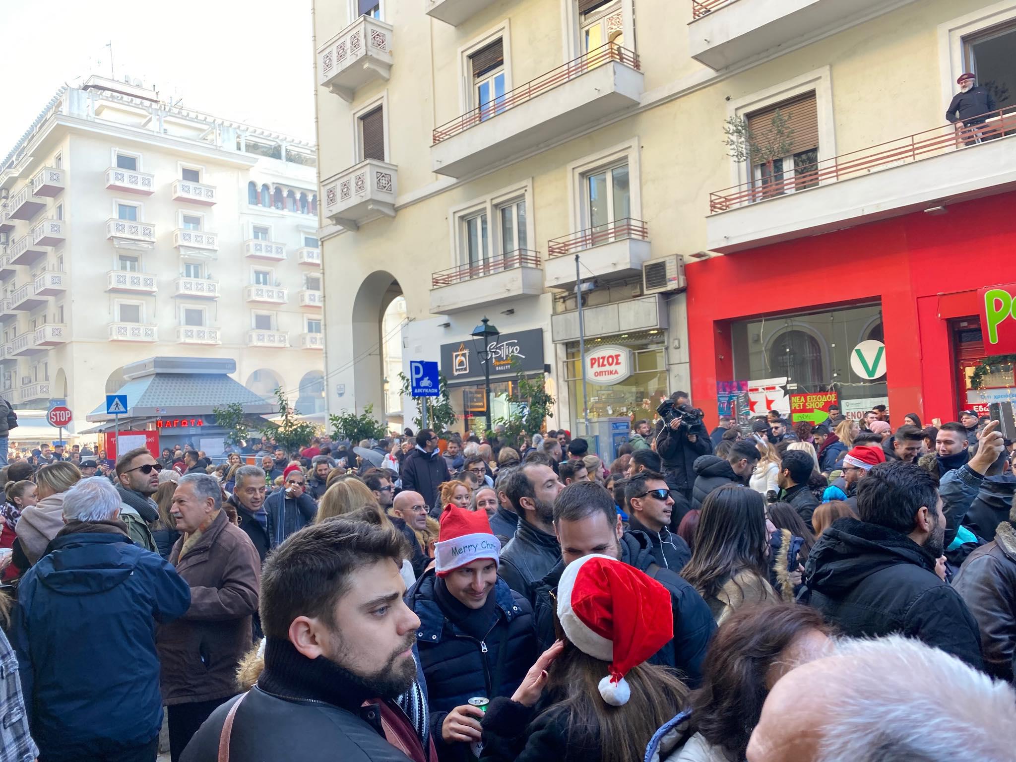 Άναψε για τα καλά το κέφι στο κέντρο της πόλης αυτή την ώρα, με τους Θεσσαλονικείς και τους τουρίστες να γίνονται μια αγκαλιά ψήνοντας και χορεύοντας.