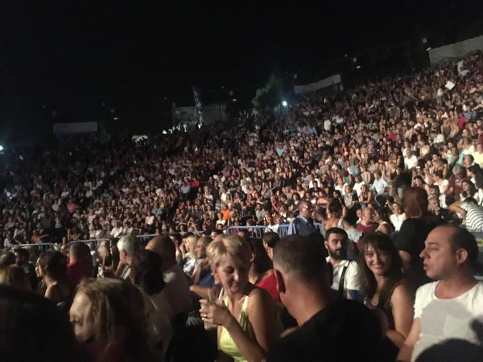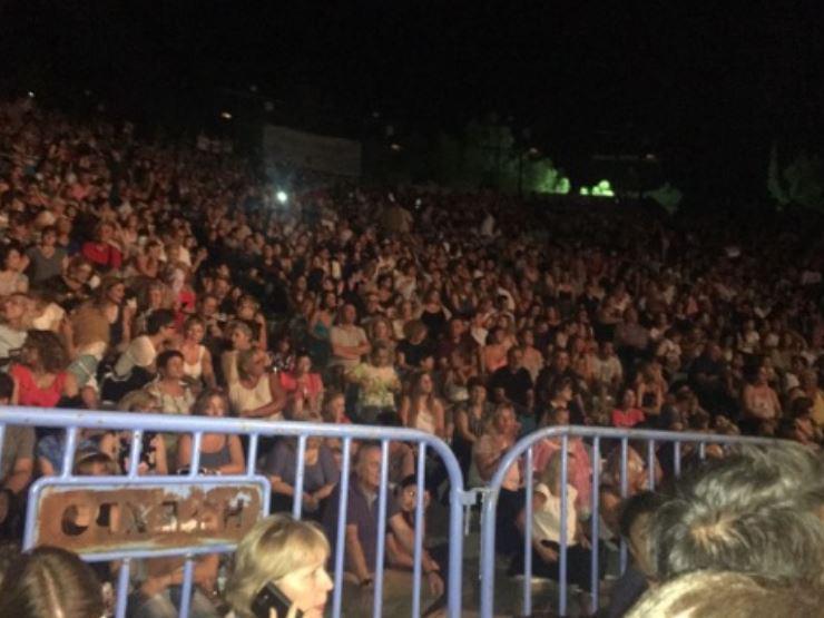 Μάλιστα, σύμφωνα με στοιχεία της ομάδας Διασωστών που βρίσκεται στον χώρο, αυτή τη στιγμή υπάρχουν μέσα στο Θέατρο Δάσους περίπου 5.000 άτομα, την ώρα που η χωρητικότητά του επισήμως είναι 3.894 θέσεων. Μερίδα του κοινού κάθεται και στις σκάλες ανάμεσα στα διαζώματα.
