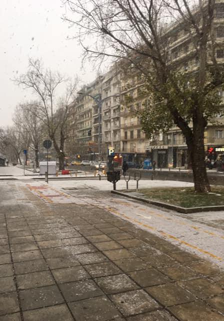 Από Θέρμη μέχρι και Μηχανιώνα οι πρώτες νιφάδες έπεσαν ήδη από τις πρώτες πρωινές ώρες ενώ αυτή την ώρα ξεκίνησε η χιονόπτωση και στο κέντρο της πόλης. Τις πρώτες νιφάδες της ημέρας βλέπουν και στα ανατολικά της πόλης από το ύψος της Χαριλάου και έπειτα.
