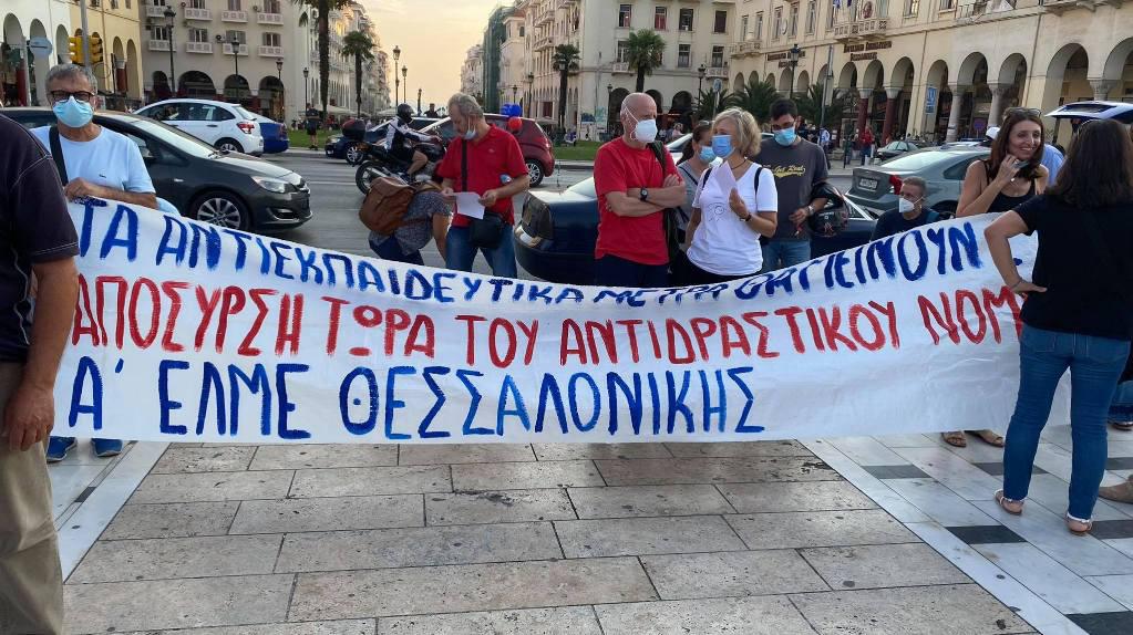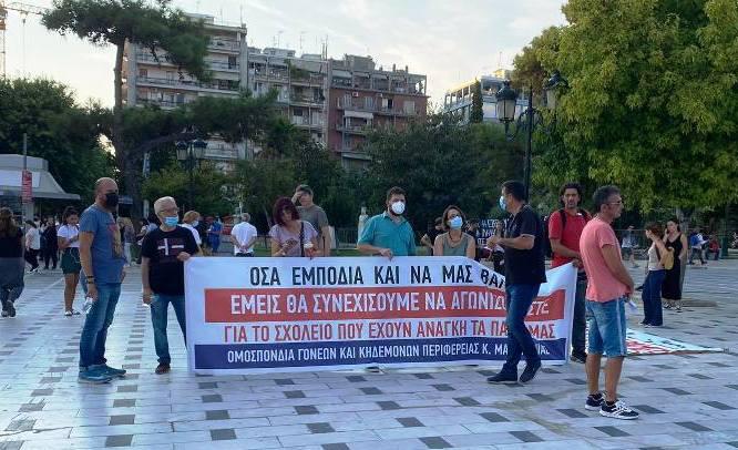 Συγκεκριμένα μέλη της Ομοσπονδίας Γονέων Κεντρικής Μακεδονίας και ΕΛΜΕ διαδηλώνουν με αίτημα τη λήψη ουσιαστικών μέτρων για την προστασία της υγείας των μαθητών και των εκπαιδευτικών. Στη συγκέντρωση συμμετέχουν και φοιτητικοί σύλλογοι, ενώ είναι πιθανόν να ακολουθήσει και πορεία.