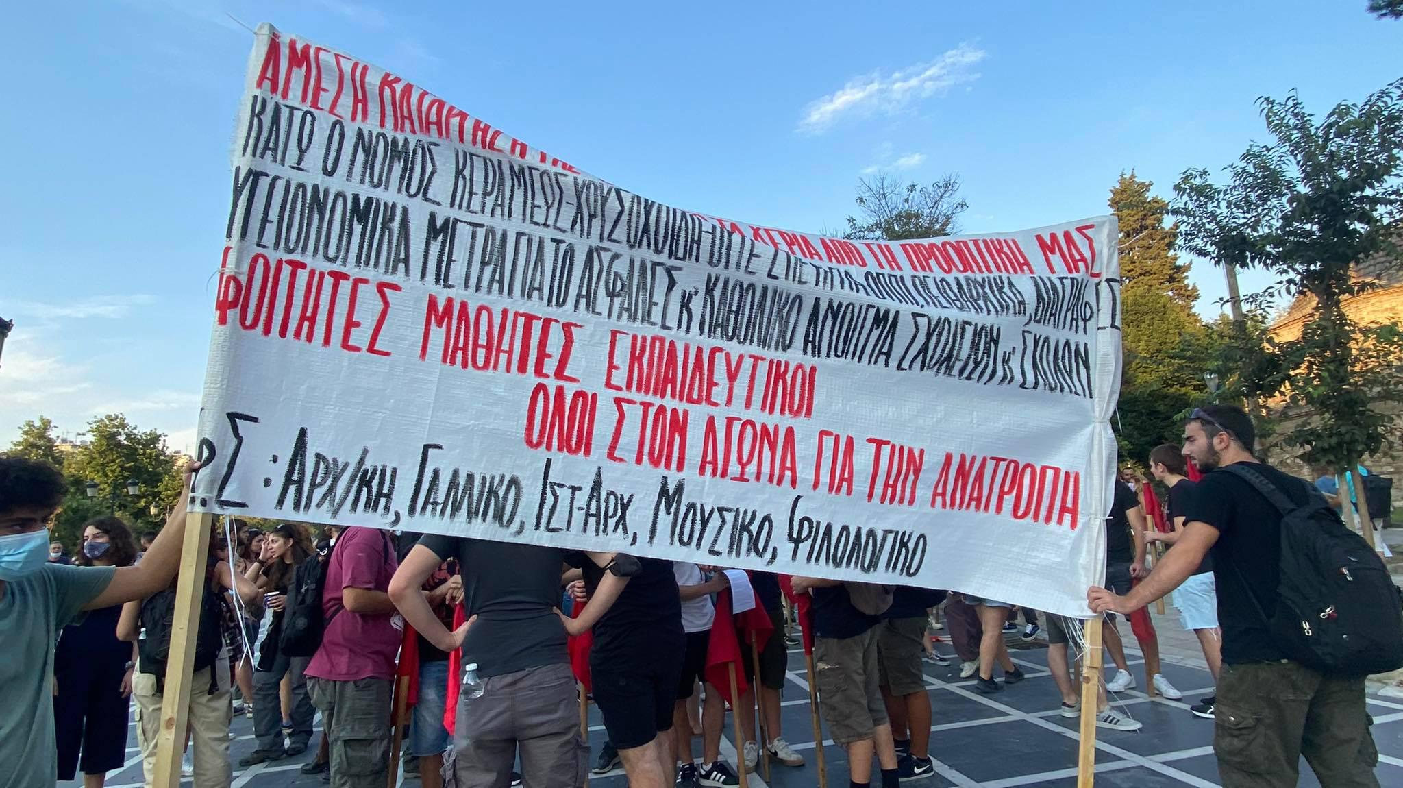 Συγκέντρωση διαμαρτυρίας και πορεία πραγματοποιούν αυτή την ώρα εκπαιδευτικοί και φοιτητές στη Θεσσαλονίκη.