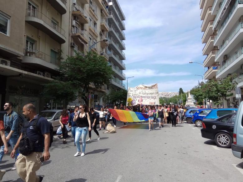 Μέλη της ΛΟΑΤΚΙ Κοινότητας βγήκαν ξανά στους δρόμους για την προστασία των δικαιωμάτων τους. Έχοντας ξεκινήσει από το Άγαλμα του Βενιζέλου κινούνται στην Εγνατία.