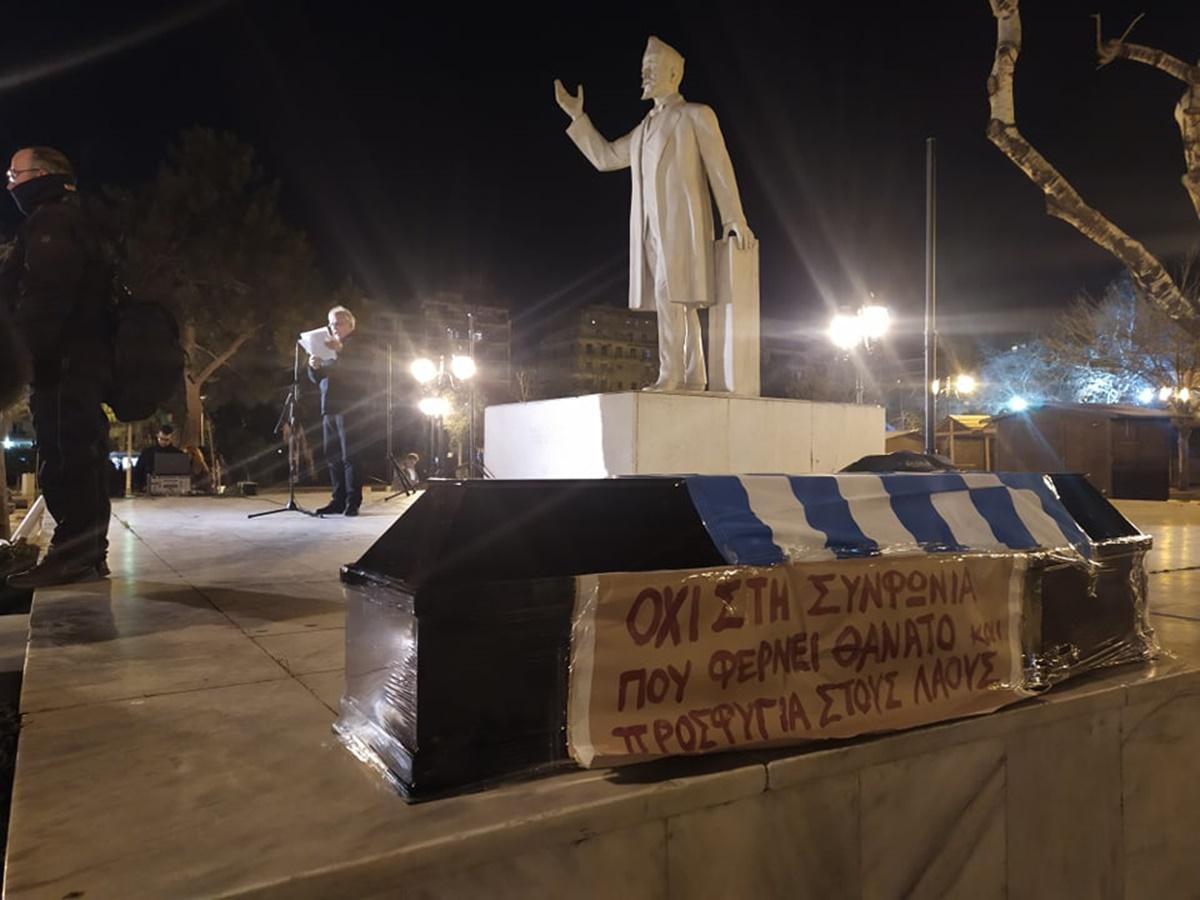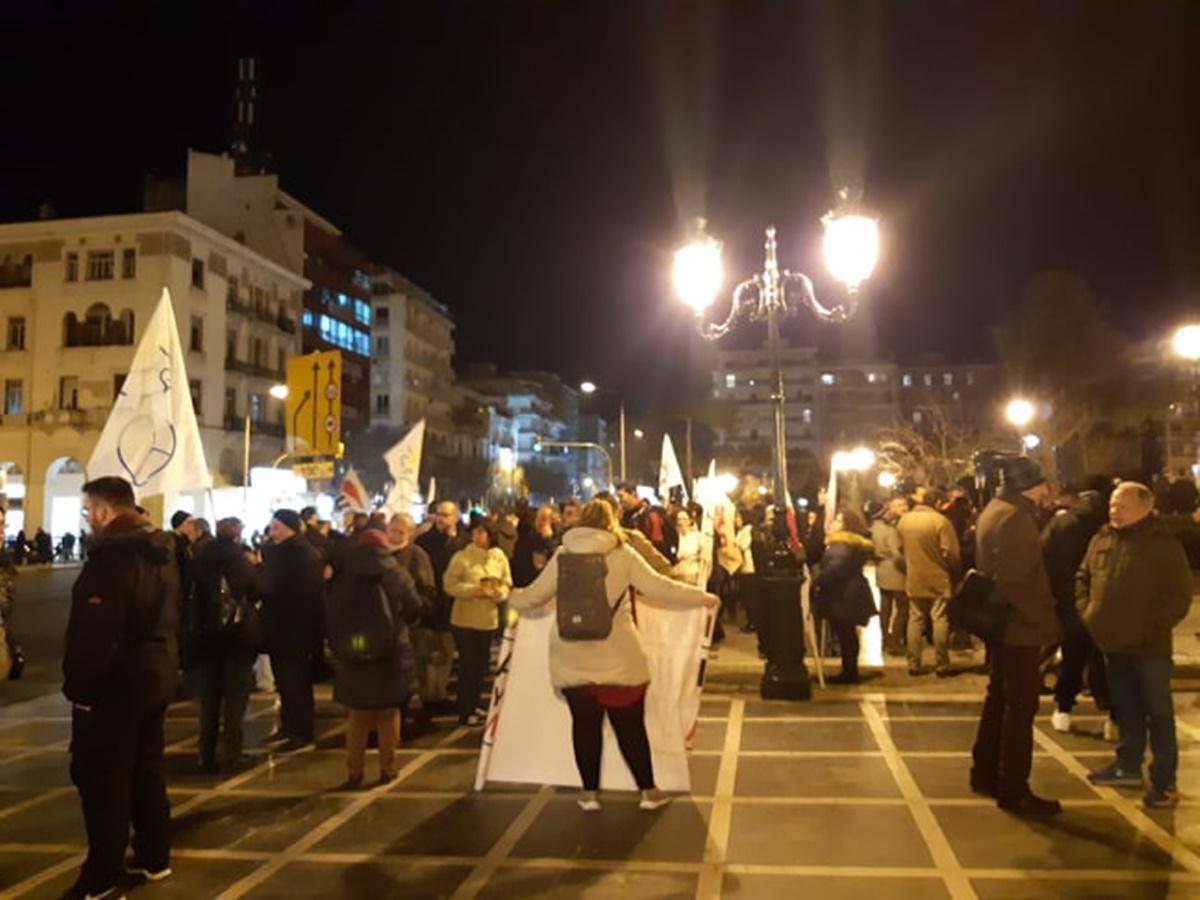 Μια δεύτερη συγκέντρωση διαμαρτυρίας για το ίδιο λόγο πραγματοποιείται από τα μέλη της ΕΔΥΕΘ, του ΠΑΜΕ και της Ομοσπονδίας Γυναικών Ελλάδας (ΟΓΕ) στο άγαλμα Βενιζέλου.