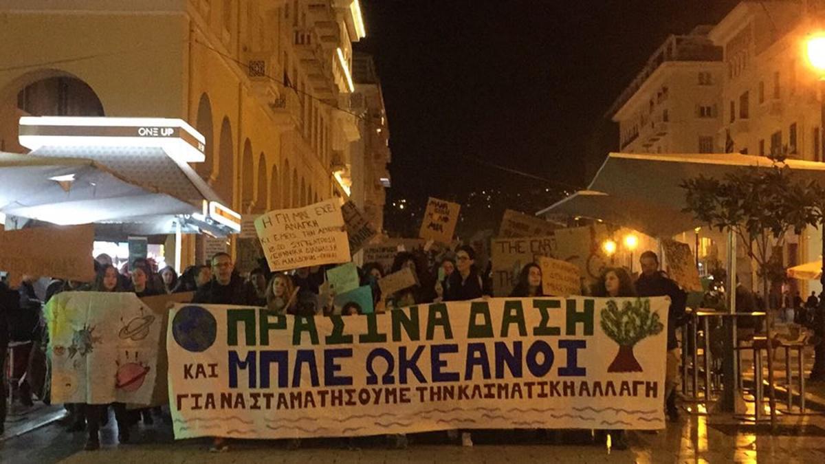 Πορεία διαμαρτυρίας πραγματοποιείται αυτή την ώρα στο κέντρο της πόλης. Πρόκειται για μέλη του Climate Strike που διαδηλώνουν υπέρ της προστασίας του περιβάλλοντος. Η πορεία κατευθύνθηκε στο άγαλμα του Αριστοτέλη, στην πλατεία Αριστοτέλους.