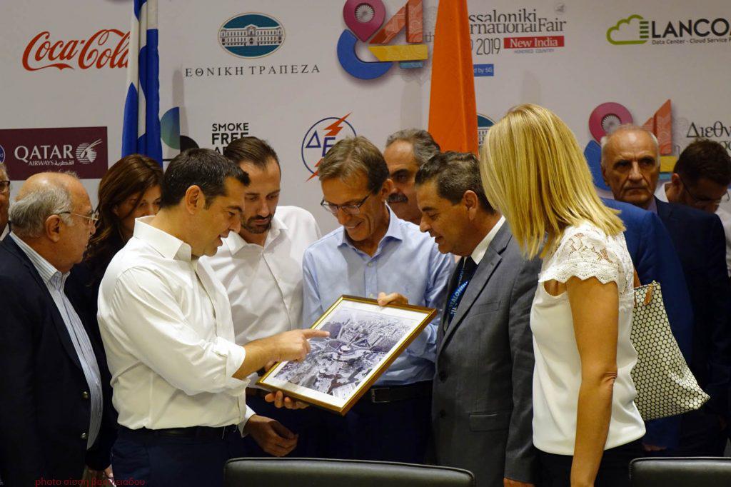 Ο Αλέξης Τσίπρας, του οποίου η υποδοχή έγινε με χειροκροτήματα, βρέθηκε με τη διοίκηση της ΔΕΘ και εν συνεχεία με το σωματείο εργαζομένων της Έκθεσης.