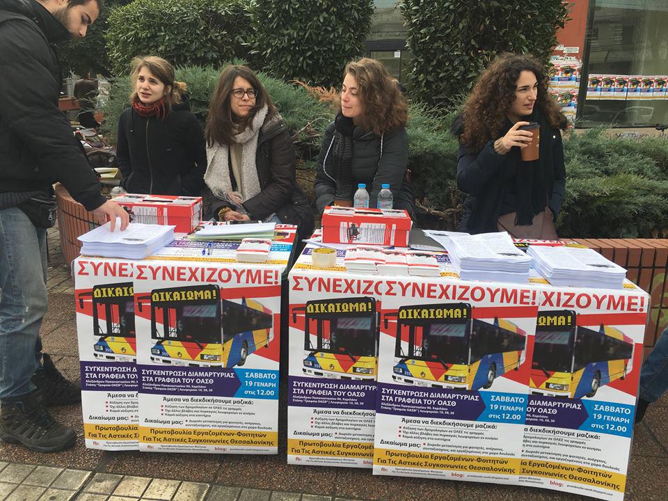 Συγκέντρωση διαμαρτυρίας βρίσκεται ήδη σε εξέλιξη έξω από τα γραφεία ΟΑΣΘ, στην οδό Παπαναστασίου, στη Θεσσαλονίκη, από τον σύλλογο Εργαζομένων και Φοιτητών για τις Αστικές Συγκοινωνίες Θεσσαλονίκης.