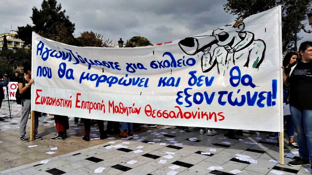 Συγκέντρωση διαμαρτυρίας πραγματοποιούν μαθητές υπό το κάλεσμα της Συντονιστικής Επιτροπής Μαθητών Θεσσαλονίκης αυτή την ώρα στο Άγαλμα Βενιζέλου, για το νέο νομοσχέδιο που προωθεί το υπουργείο Παιδείας.