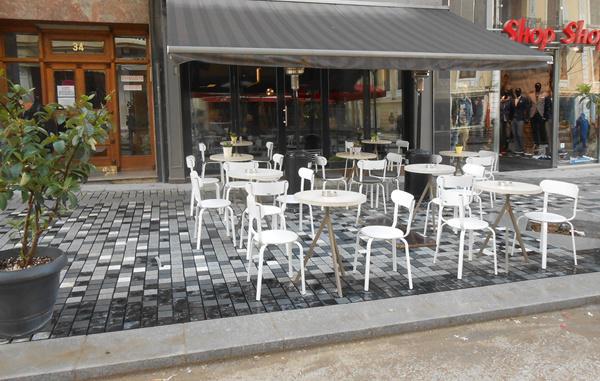 Περνώντας σήμερα απ΄τον πεζόδρομο της Αγίας Σοφίας για να δω την πρόοδο των εργασιών που σκοπό έχουν την παράδοση του χώρου πριν το Πάσχα, με χαρά διαπίστωσα ότι οι εργασίες ανάπτυξης τραπεζοκαθισμάτων υπερέβησαν σε ταχύτητα τα συνεργεία (είδες η ιδιωτική πρωτοβουλία;). Κάνοντας λοιπόν ένα ρεζουμέ της κατάστασης σε συνδυασμό με τις νέες κανονιστικές περί τραπεζοκαθισμάτων έφτιαξα μια μικρή λίστα πολύ “διασκεδαστική”.