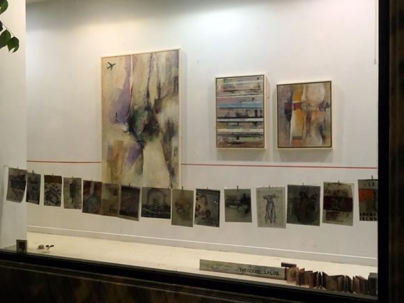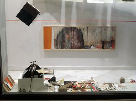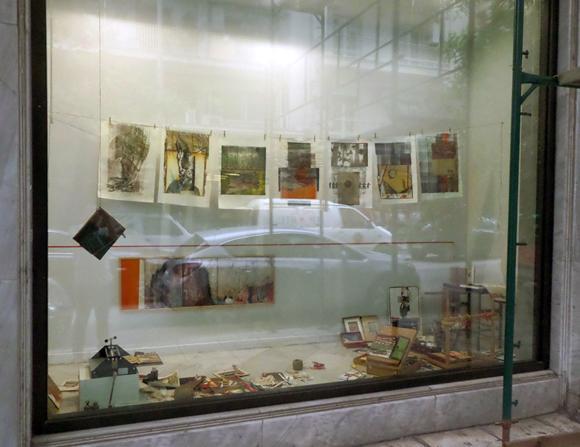 Πινέλα, κλωστές, χαρτιά, σχέδια, χειροποίητα εικαστικά βιβλία, συνθέτουν ένα σύνολο που σε προκαλεί να σταθείς για λίγα λεπτά, σε κάτι διαφορετικό στον καθημερινό σου περίπατο στην πόλη.