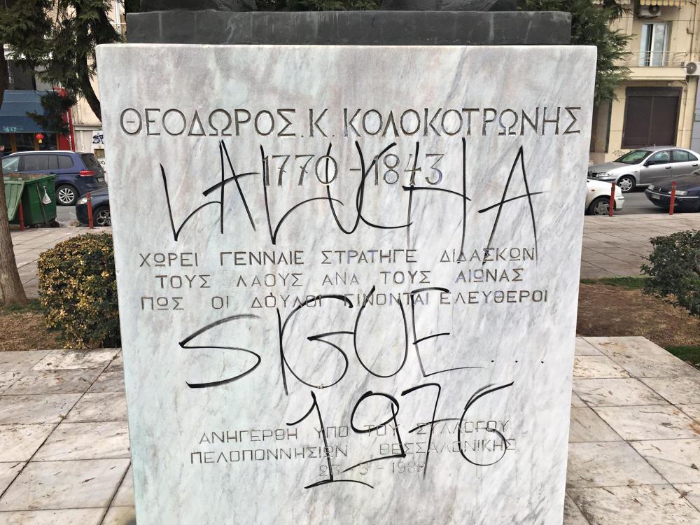 Βεβήλωση αγάλματος του Κολοκοτρώνη στην πλατεία ΧΑΝΘ