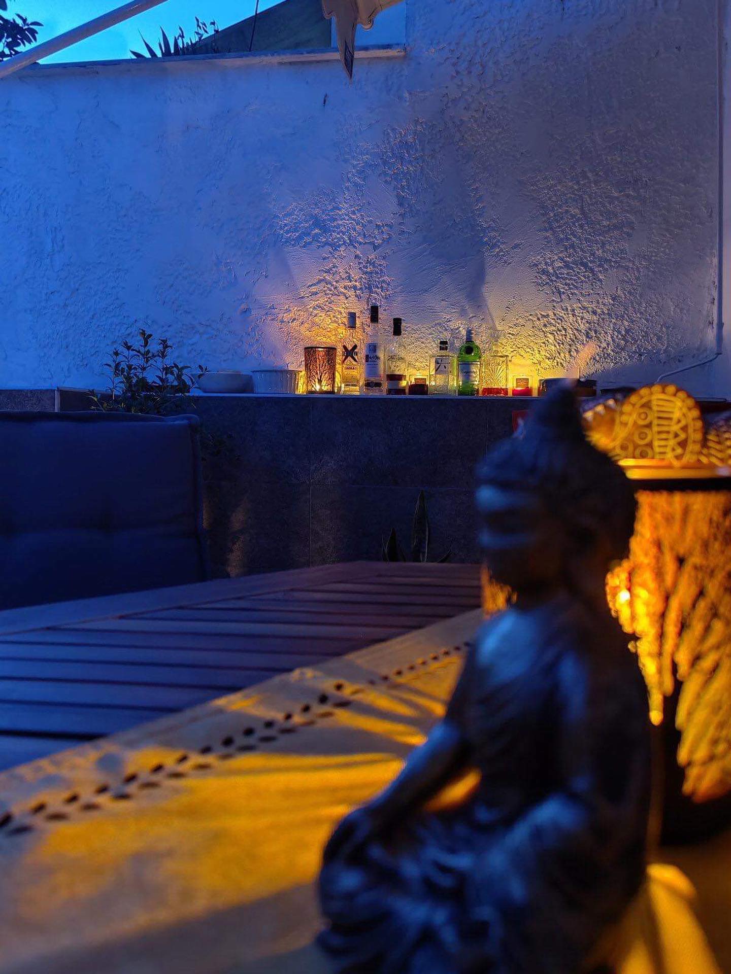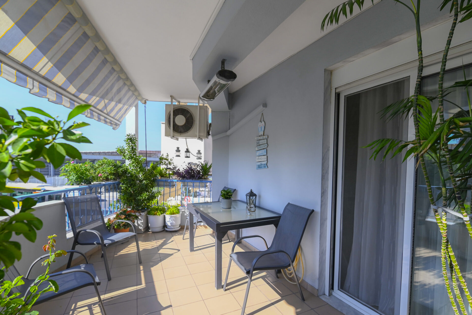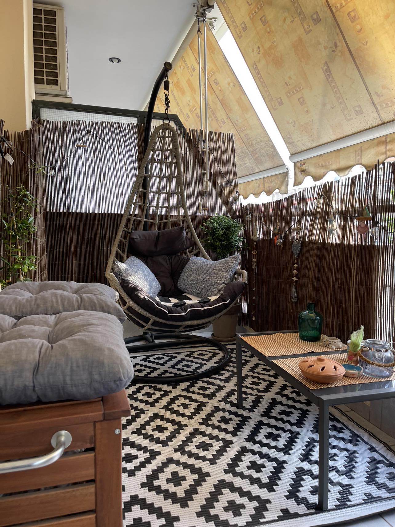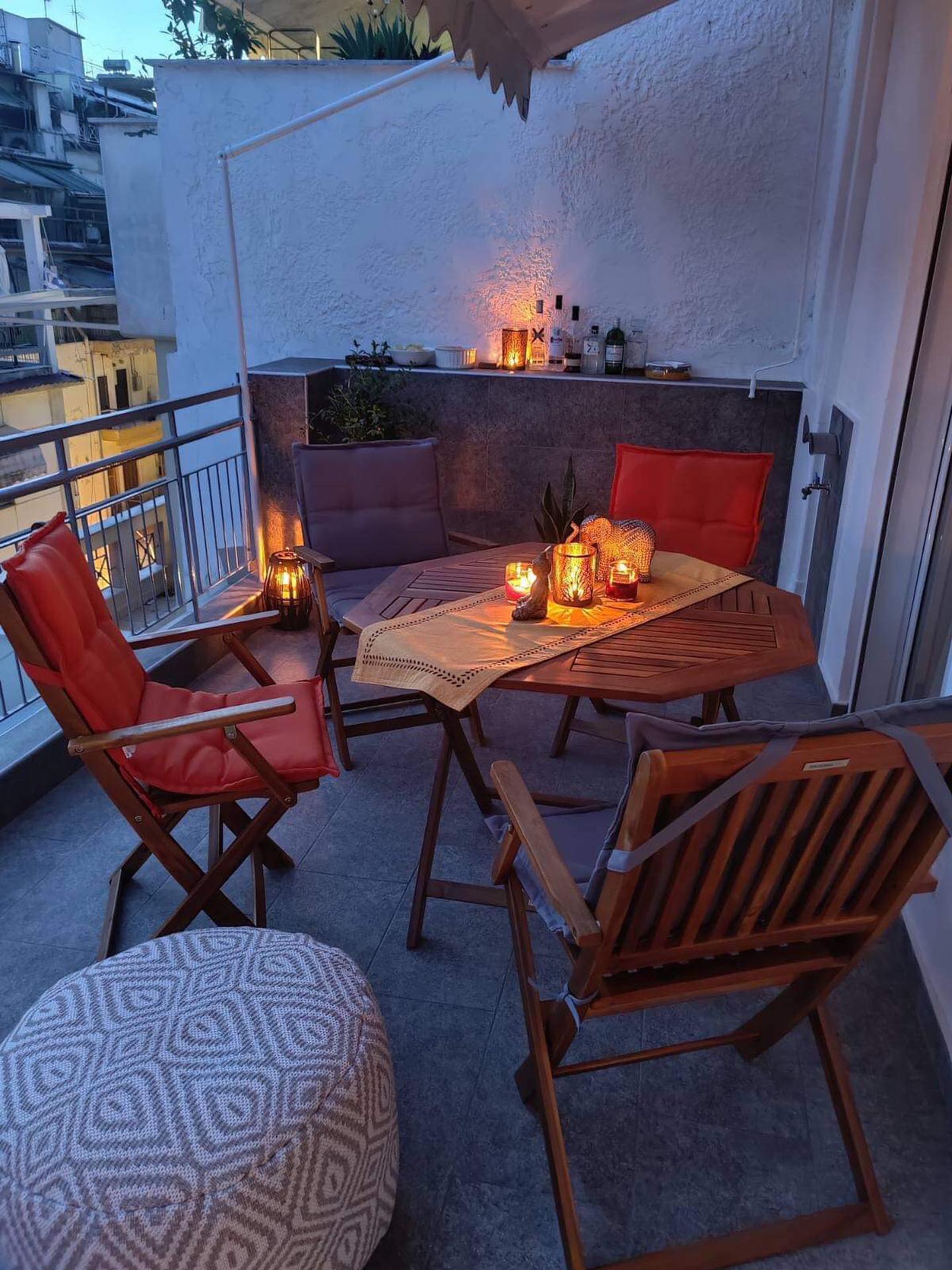 Το μπαλκόνι μας διαμορφώθηκε στο πλαίσιο ανακαίνισης ολόκληρου του διαμερίσματος, στα τέλη του 2021. Το κόστος της ανακαίνισης μαζί με τα έπιπλα που αγοράσαμε καθώς και τα φυτά για να το διακοσμήσουμε, ανήλθε στο ποσό των 2.500 ευρώ περίπου. Στο μπαλκόνι καθόμαστε κυρίως κατά τους ανοιξιάτικους και καλοκαιρινούς μήνες, τις βραδινές ώρες, που είναι πιο δροσερά. Μας αρέσει να απολαμβάνουμε κρύα μπύρα, ενώ ακούμε μουσικές της επιλογής μας, να γευματίζουμε, να συζητάμε για το πως κύλησε η μέρα μας, να παρακολουθούμε σειρές/ταινίες, ενώ συχνά προσκαλούμε φίλους μας. Οι πιο ωραίες αναμνήσεις είναι οι βραδιές με παρέα και μουσικές, ιδίως στα πλαίσια γενεθλίων και γιορτών. Το μπαλκόνι αποτελεί ίσως το πιο όμορφο μέρος του σπιτιού μας. Είναι σχετικά μεγάλο και μπορεί να φιλοξενήσει αρκετό κόσμο. Αισθανόμαστε πολύ τυχεροί που έχουμε τη δυνατότητα, μέσα στην πόλη να βρισκόμαστε σε εξωτερικό χώρο, ειδικά σε υψηλό όροφο (4ος), που μας επιτρέπει να απολαμβάνουμε ανάσες δροσιάς χωρίς να εμποδίζεται η θέα στον ουρανό, καθώς και να προσκαλούμε φίλους, οργανώνοντας διάφορες βραδιές.