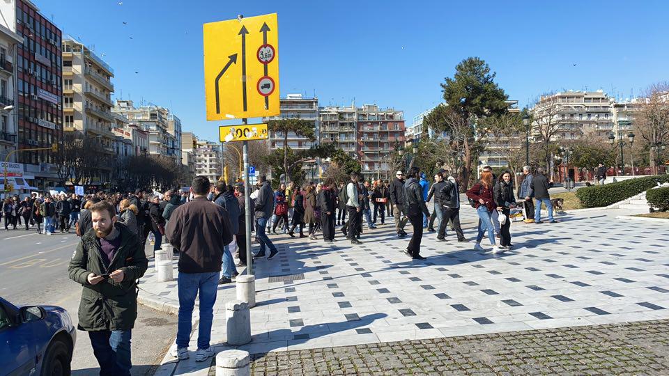 Στις 13:00 η πορεία έφτασε στην Τσιμισκή. Ο δρόμος είναι κλειστός για τα αυτοκίνητα.