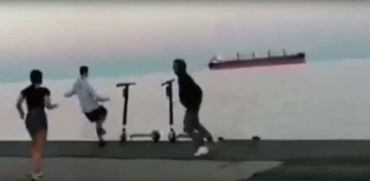 Σε βίντεο το οποίο δημοσιεύει το ethnos.gr, φαίνονται τρία νεαρά άτομα, δυο αγόρια και ένα κορίτσι οι οποίοι έχουν τοποθετήσει στην άκρη του πλακόστρωτου τρία ηλεκτρικά πατίνια, και στη συνέχεια παίρνουν φόρα, και με κλωτσιές τα ρίχνουν στη θάλασσα.