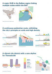 Η ομάδα του BURA urbanism, του αρχιτεκτονικού γραφείου που κατέθεσε την πρόταση, θεωρεί πως το πιο σημαντικό και καινοτόμο στοιχείο της είναι η δημιουργία του μεγάλου πεζόδρομου που συνδέει το Επιχειρηματικό Κέντρο με τον υπόλοιπο κόλπο. Εκτιμώντας ότι η Θεσσαλονίκη δεν έχει αρκετούς ανοικτούς χώρους, θεωρούν ότι ο πεζόδρομος αυτός θα μπορούσε να ανοίξει την πόλη προς τη θάλασσα προσφέροντας μια εξαιρετική θέα του Θερμαϊκού κόλπου.