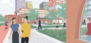Όσον αφορά την κινητικότητά, η πρόταση τοποθετεί στο επίκεντρο τους πεζούς, τους ποδηλάτες και τα μέσα μαζικής μεταφοράς, ενώ σχεδόν αποκλείει πλήρως από την περιοχή τα αυτοκίνητα. Με αυτόν τον τρόπο δημιουργούνται ασφαλείς και ευχάριστοι δημόσιοι χώροι, πλατείες, πάρκα και δρόμοι όπου οι πεζοί και οι ποδηλάτες έχουν προτεραιότητα.