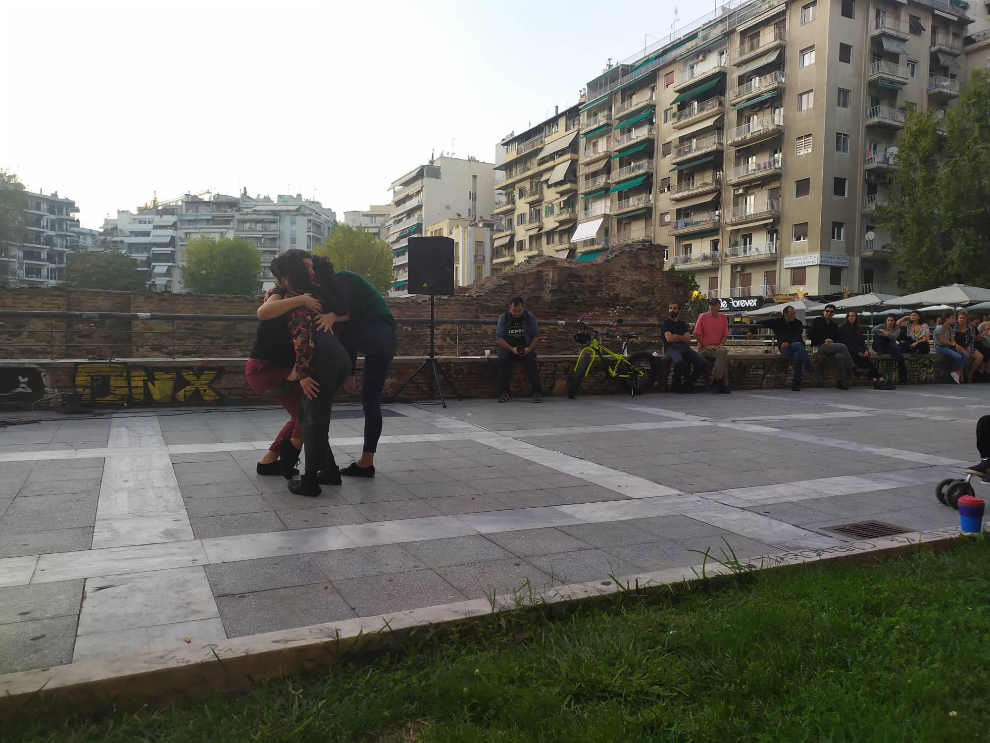 Με άξονα την καθημερινή χρήση των πλατειών αυτών, δηλαδή την Αψίδα του Γαλέριου ως σημείο σύντομης συνάντησης (ραντεβού), της πλατείας Ναυαρίνου ως μέρος για παρέα και κουβέντα και της πλατείας Αριστοτέλους ως σημείο έναρξης πολιτικών διαδηλώσεων, οι περφορμερ σωματοποιούν αυτήν την χρήση μέσα από την κίνηση, τον ήχο, την φωνή και τον καμβά αλλάζοντας συγχρόνως και τη συνηθισμένη τους μορφή. Μια δράση που αποσκοπεί να έχει προσβασιμότητα σε όλους, ανεξαρτήτως χρώματος, φυλής, ηλικίας, φύλου και προτιμήσεων, φέρνοντας και τον κόσμο και τους συμμετέχοντες σε μια κατάσταση αλληλεπίδρασης έξω από τα καθιερωμένα.