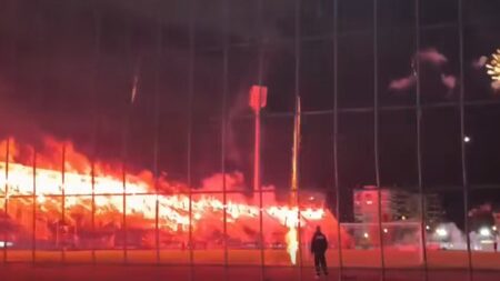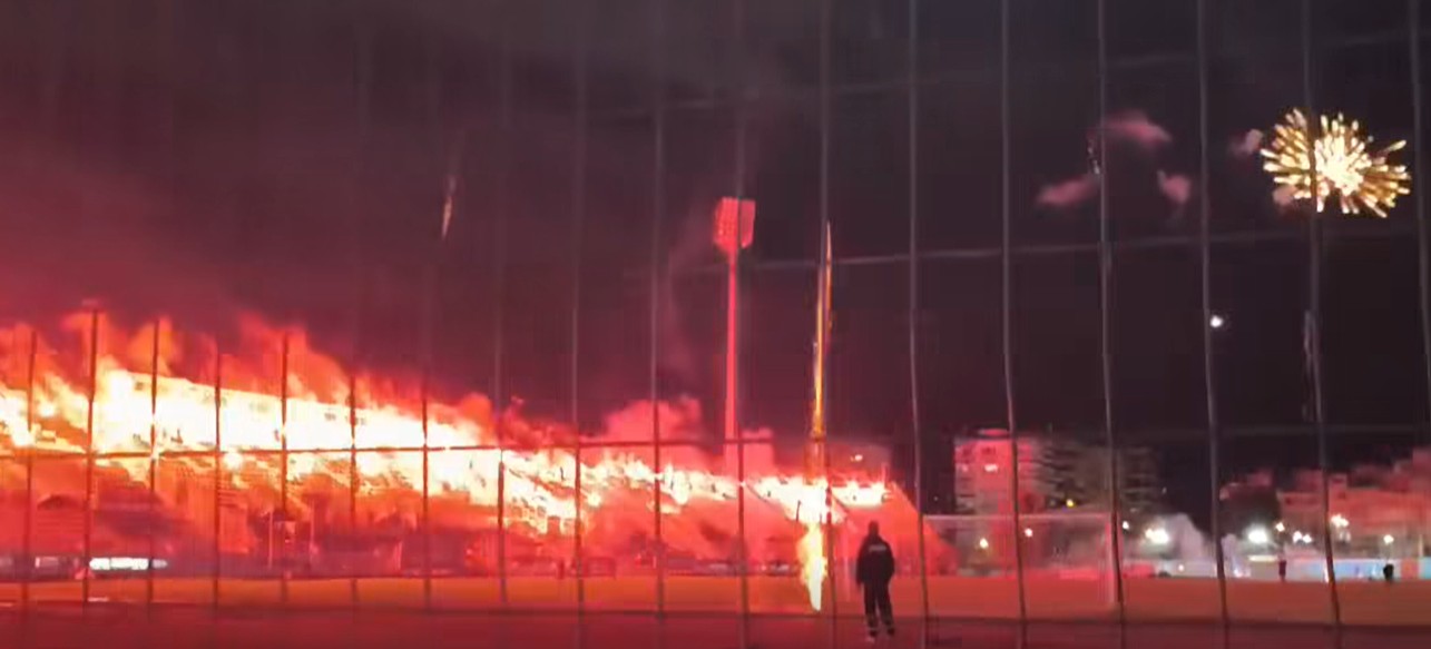 Δεκάδες πυροτεχνήματα και πυρσοί στο γήπεδο της ιστορικής ομάδας, αλλά και κατά μήκος της πλαζ Αρετσούς