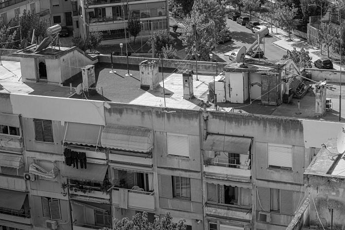 Την επιβεβαιώνει και η ουρά πίσω από την εκκλησία των Αγ. Πάντων, “το μεγαλύτερο συσσίτιο της πόλης”, όπως με πληροφορεί ο Αγαπητός Σαμαράς, μέλος του Κοινοτικού Συμβουλίου. Οι περισσότεροι νέοι και τα ζευγάρια συνήθως μετακομίζουν αλλού στην Θεσσαλονίκη ή λίγο δυτικότερα, στους Αμπελόκηπους, αναζητώντας καλύτερες υποδομές, ασφάλεια και διαφυγή από την εγκατάλειψη.