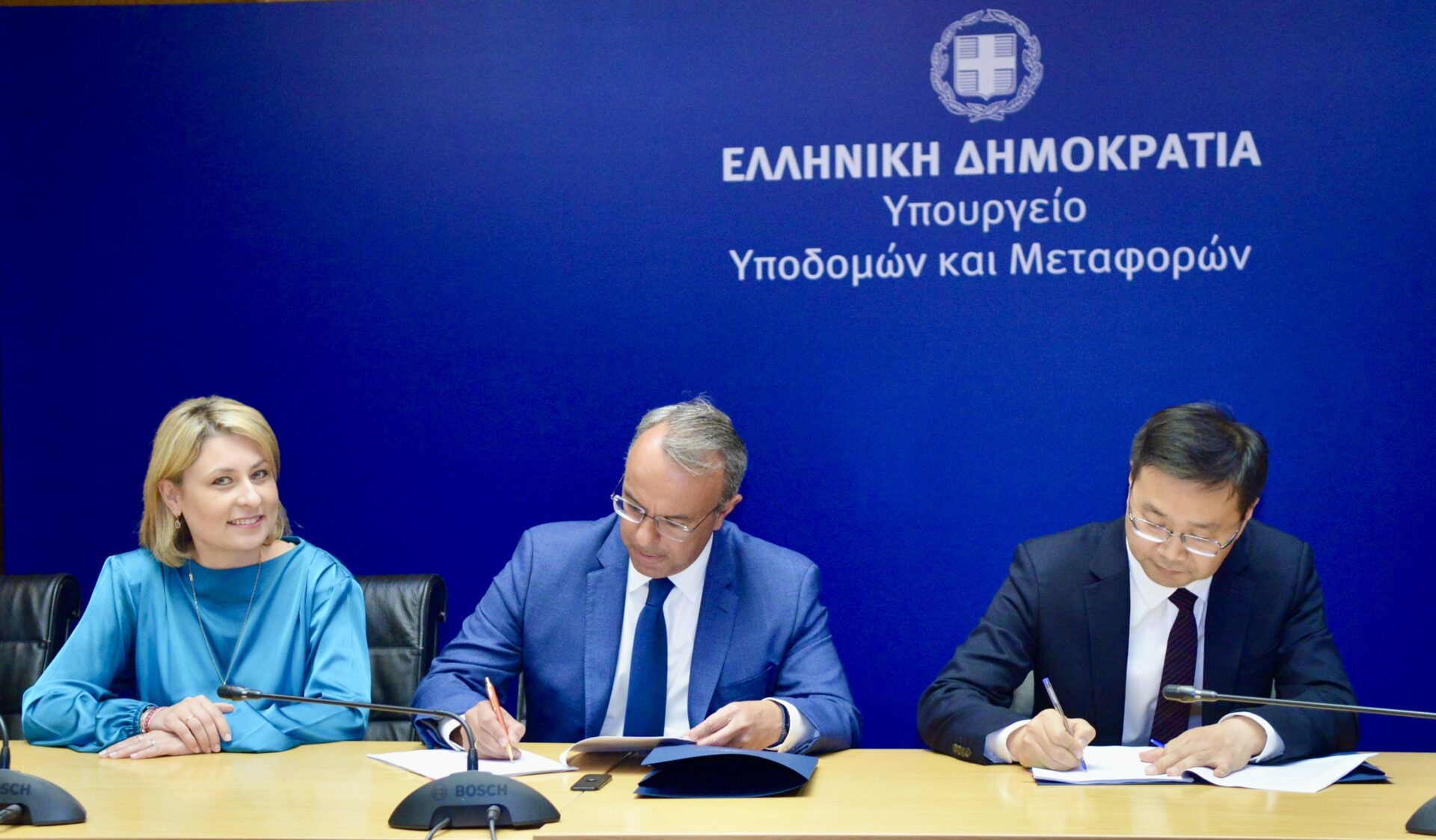 Τη σύμβαση προμήθειας 250 νέων ηλεκτρικών λεωφορείων, τα οποία θα κυκλοφορούν στους δρόμους της Αθήνας και της Θεσσαλονίκης έως τα τέλη Απριλίου, υπέγραψε, σήμερα Τρίτη, ο Υπουργός Υποδομών και Μεταφορών, Χρήστος Σταϊκούρας, με τον Chief Executive Officer Europe της «YUTONG BUS CO. LTD», Jack Li, παρουσία της Υφυπουργού Υποδομών και Μεταφορών, αρμόδιας για τις Μεταφορές, Χριστίνας Αλεξοπούλου, του Γενικού Γραμματέα Μεταφορών, Γιάννη Ξιφαρά και της Account Manager Europe της εταιρείας, Frances Fan.