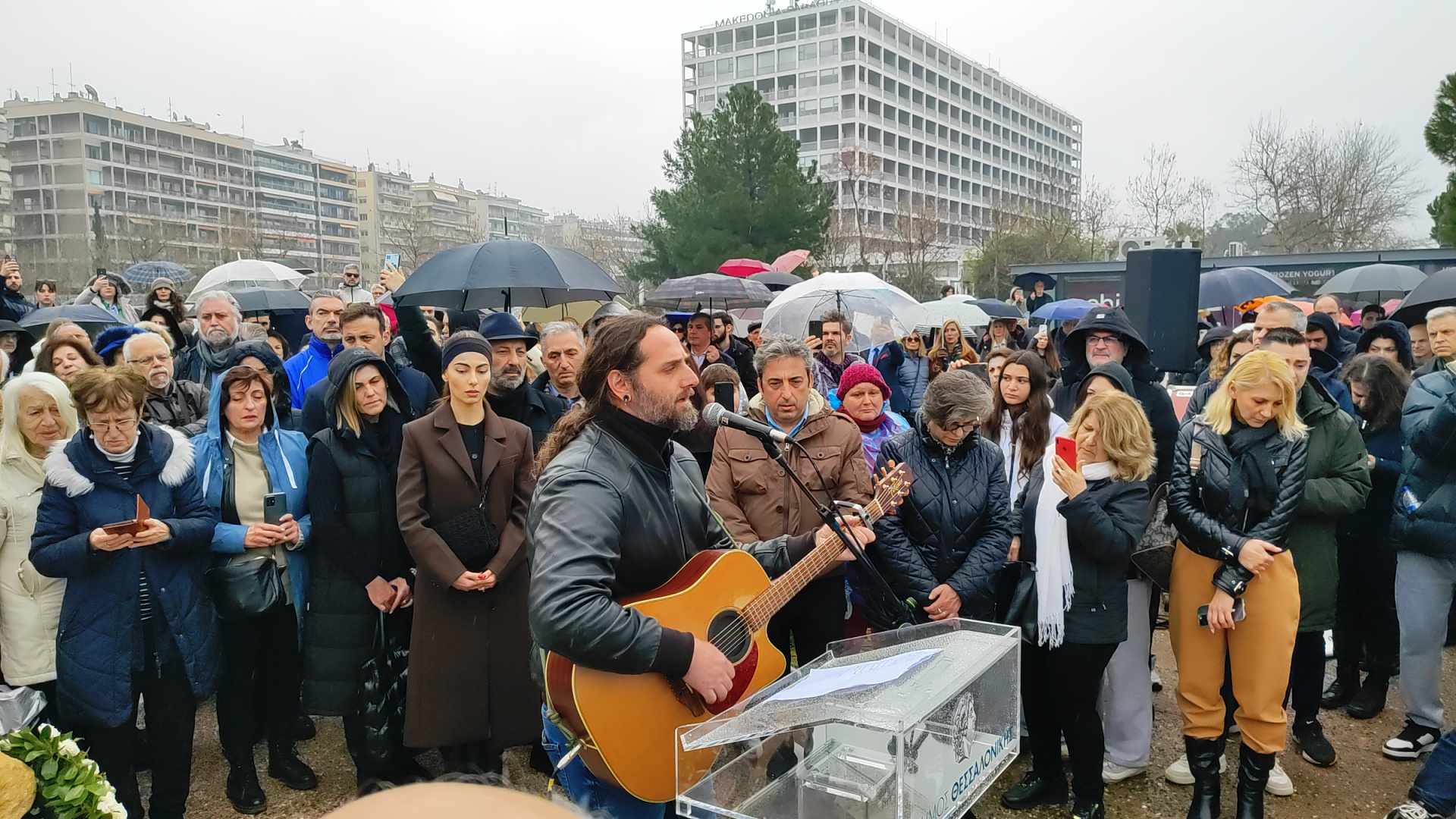 Ο μουσικός Κώστας Βέρρος, συγκίνησε τον κόσμο στα αποκαλυπτήρια που πραγματοποιήθηκαν σήμερα, Κυριακή 2 Μαρτίου, για το μνημείο «Δέντρο της Μνήμης», στη Νέα Παραλία Θεσσαλονίκης, εις μνήμην των 57 ψυχών που χάθηκαν στο έγκλημα των Τεμπών.