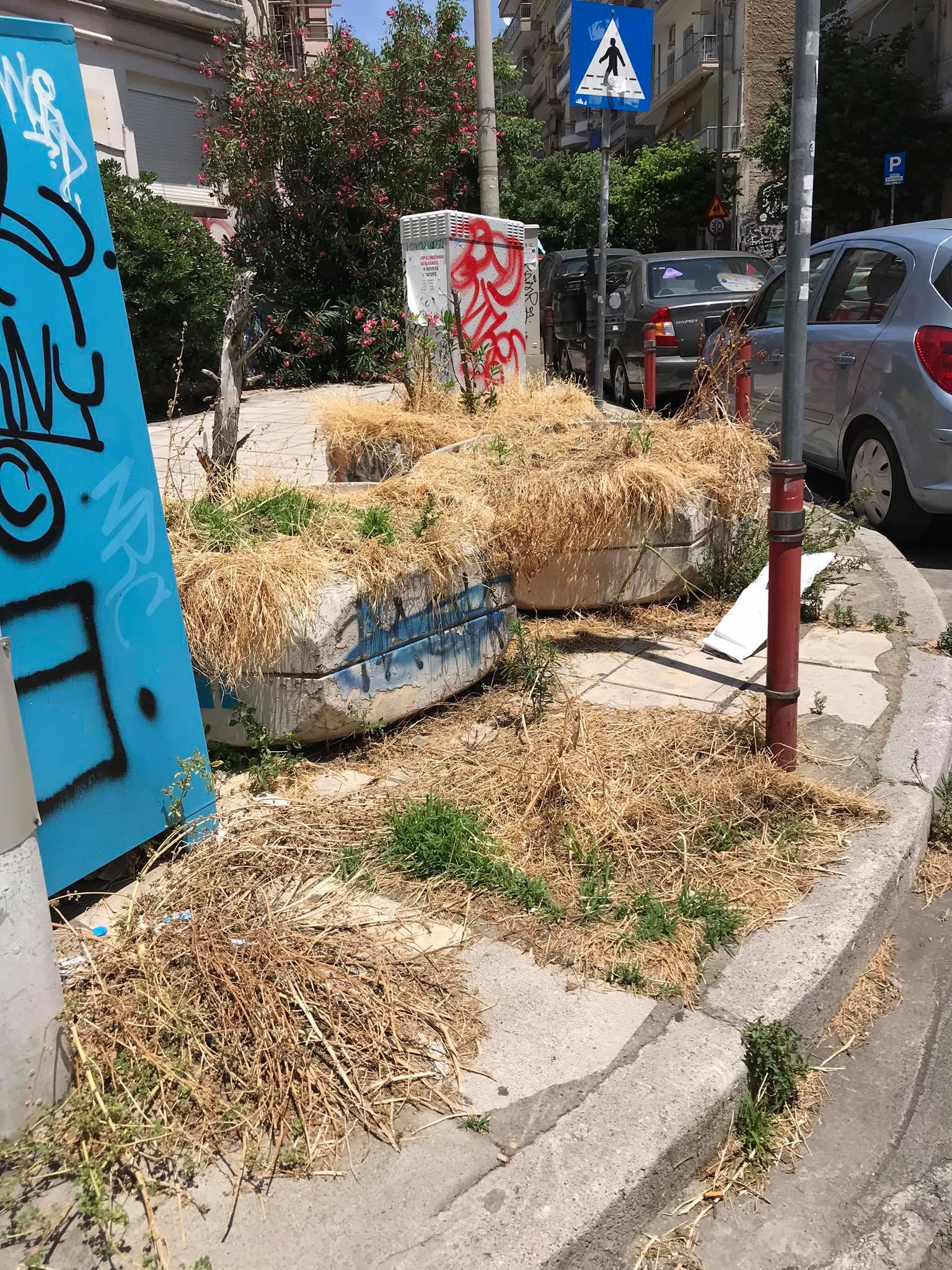 Αρριανού και Ιασωνίδου απέναντι από την είσοδο του Άγιου Παντελεήμονα υπάρχουν τα παρακάτω παρτέρια με αυτό το θέαμα. Οι κάτοικοι παρά τις διαρκείς οχλήσεις προς την πλευρά του δήμου για αυτή την εικόνα αντιμετωπίζουν τη συστηματική αδιαφορία. Ο δήμαρχος που διατέλεσε στο παρελθόν αντιδήμαρχος Πρασίνου με ευαισθησίες ελπίζουμε ότι δεν θα προσπεράσει το θέαμα αυτό.