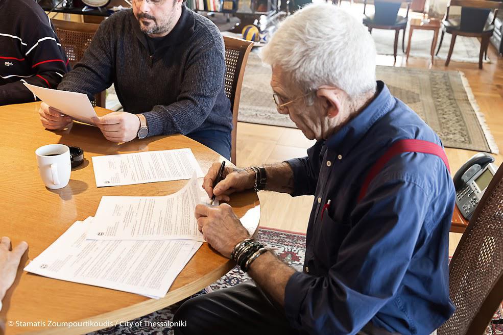 Η σύμβαση του έργου «Βιοκλιματική αναβάθμιση πλατείας Ελευθερίας» υπογράφηκε σήμερα, Δευτέρα 18 Φεβρουαρίου 2019, ανάμεσα στον Δήμαρχο Θεσσαλονίκης, Γιάννη Μπουτάρη και τον εκπρόσωπο της αναδόχου εταιρίας, παρουσία του Αντιδημάρχου Τεχνικών Έργων, Περιβάλλοντος και Καθαριότητας, Θανάση Παππά.