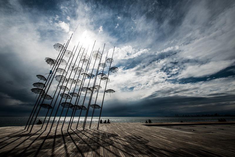 Ούτε οι Ομπρέλες του Χερβούργου δεν μπορούν να φτάσουν τη δόξα τους. Η μεγάλη κατασκευή από ανοξείδωτο χάλυβα, με τις 40 Ομπρέλες δέσποζε στο πλακόστρωτο κοντά στο ξενοδοχείο «Μακεδονία Παλάς» από το 1997, έτος της Πολιτιστικής Πρωτεύουσας. Πολυφωτογραφημένες εντός και εκτός Ελλάδος αποτελούν σήμερα, ιδιαί- τερα στη νέα τους θέση μετά την ανάπλαση της Νέας Παραλίας, το νεότερο σύμβολο της πόλης. Για τους επισκέπτες της πόλης μια σέλφι μπροστά τους επιβάλλεται. Μας αρέσει ο νέος φωτισμός τους σε όχρα αλλά δεν μας χαλάει και κάθε που αλλάζουν χρώμα, για να τιμήσουν εκδηλώσεις, σε ροζ ή μπλε.