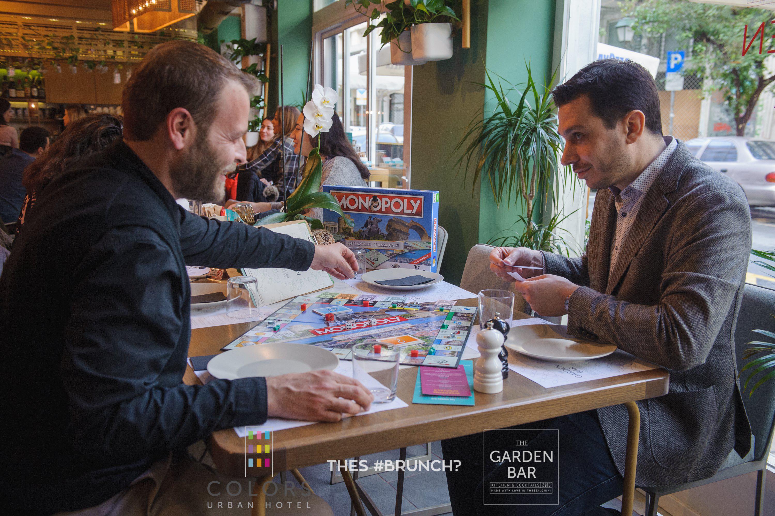 Το πρώτο thessbrunch του Φλεβάρη Την Κυριακή 4 Φεβρουαρίου έγινε το πρώτο χειμωνιάτικο event στο κέντρο της Θεσσαλονίκης. Εκεί δοκιμάσαμε ένα πολύχρωμο Thessbrunch που μας…απογείωσε. Τα τραπέζια γέμισαν και οι γαστριμαργικές επιλογές του έμπειρου σεφ Ηλία Γωγάκου ικανοποιήσαν τους θαμώνες που κατέκλυσαν το restaurant-bar του ξενοδοχείου καθώς για άλλη μια φορά η κουζίνα του Colors Urban Hotel, εντυπωσίασε. Όσοι βρέθηκαν σε αυτό το event είχαν την ευκαιρία να γευτούν από την εξαιρετική κουζίνα, αλλά και να πάρουν μέρος στο διαγωνισμό της Ellinair για να κερδίσουν αεροπορικά εισιτήρια. Σε αυτό το Thessbrunch η υπεύθυνη marketing της Ένωσης Ξενοδόχων Θεσσαλονίκης κα Χρύσα Σαραβέλου σε συνεργασία με τη διεύθυνση του ξενοδοχείου, ετοίμασαν μια έκπληξη που δοκίμασε τις ικανότητες, όσων συμμετείχαν στο event, στη… διαχείριση! Μια monopoly στήθηκε σ ένα κεντρικό τραπέζι και κέρδισε το ενδιαφέρον των παρευρισκόμενων.