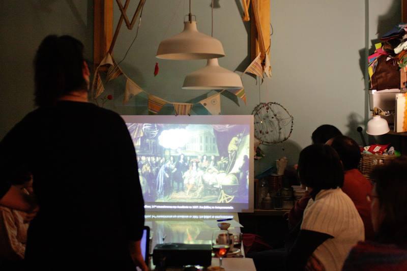 Ένα καλλιτεχνικό καφενείο γεμάτο ιδέες, καινοτομίες, νοστιμιές. Γιατί εκεί που πίνεις τον καφέ ή το ούζο σου, ή το ποτό σου και γεύεσαι μεζέδες, μπορείς να ανέβεις την εσωτερική σκάλα και να ρίξεις ένα βλέφαρο στο πατάρι του. Εκεί έχει στηθεί ένας χώρος που προσφέρεται για φιλοξενία εκθέσεων κα. Ένα πατάρι εξαιρετικό όπου συμβαίνουν διαρκώς ωραία πράγματα από εικαστικά δρώμενα μέχρι και εργαστήρια για μικρούς και μεγάλους.