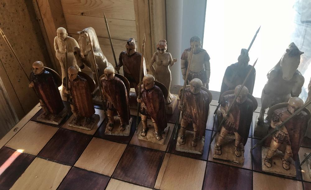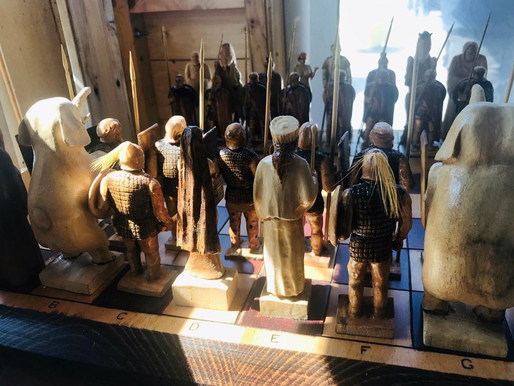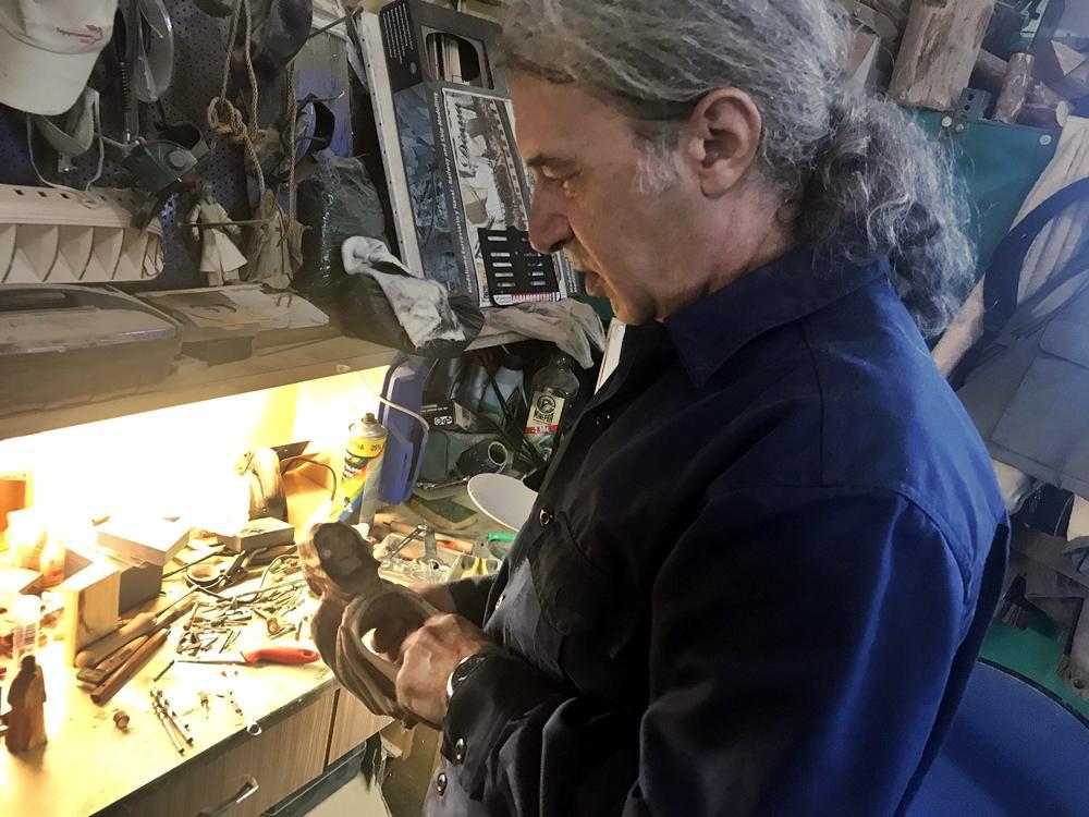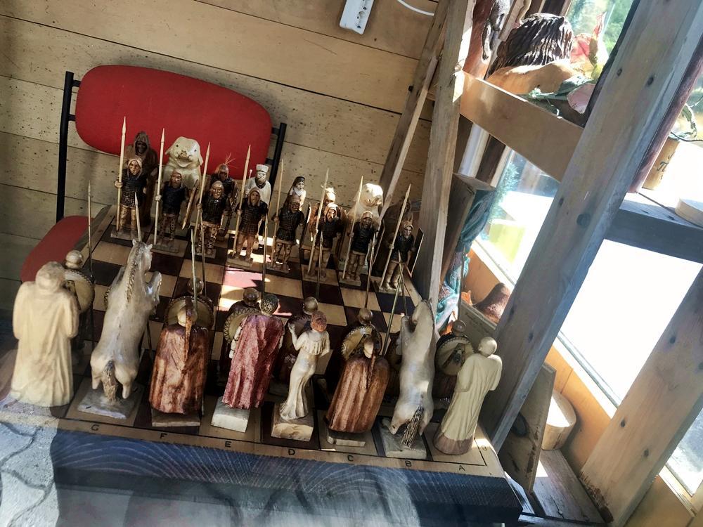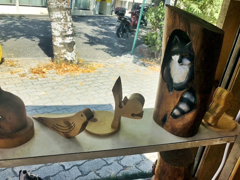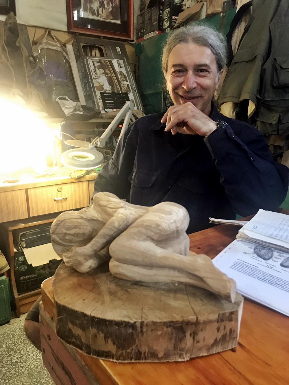 Εδώ στην Μονάδα Πρασίνου ξεκίνησε το εργαστήριο για επισκευές των μηχανημάτων που έχουμε. Χαλούσε κάποιο μηχάνημα και έπρεπε να λειάνουμε τα μαχαίρια από τα κοπτικά για το γρασίδι, τέτοια πράγματα. Μετέτρεψα αυτό το εργαστήριο και σε εργαστήριο ξυλογλυπτικής, εκτός από επισκευές μηχανημάτων. Επισκευάζαμε έπιπλα, κάναμε πυρογραφίες σε πινακίδες. Ο συνάδελφος που ήταν εδώ παρατήρησε ότι έπιανε το χέρι μου στην ζωγραφική και την πυρογραφία και μου λέει, γιατί δεν κάνεις το 2d, το συμβατικό 3D, δηλαδή αγαλματίδια. Ξεκίνησα όντως να φτιάχνω και είδα ότι με τραβάει πάρα πολύ. Τα αγαλματίδια ειδικά και όχι τόσο οι εικόνες. Έκανα σταυρούς για τον λαιμό, αγάλματα, απόκοσμα θέματα, άλλοτε σκοτεινά, αλλά και χαρούμενα, ζωάκια, φιγούρες. Βρήκα ότι η ξυλογλυπτική ήταν αυτό που μου έλειπε πολλά χρόνια. Η κατεργασία του ξύλου μου αρέσει πάρα πολύ. Όταν μπορείς και βγάζεις αυτό που έχεις στο μυαλό σου επάνω στο ξύλο και του δίνεις μορφή, όπως ένα σκάκι που έχω κάνει ας πούμε, είναι κάτι το μαγικό. Έχω ασχοληθεί και με τον πηλό, αλλά βρίσκω πιο ενδιαφέρον και ζεστό το ξύλο.