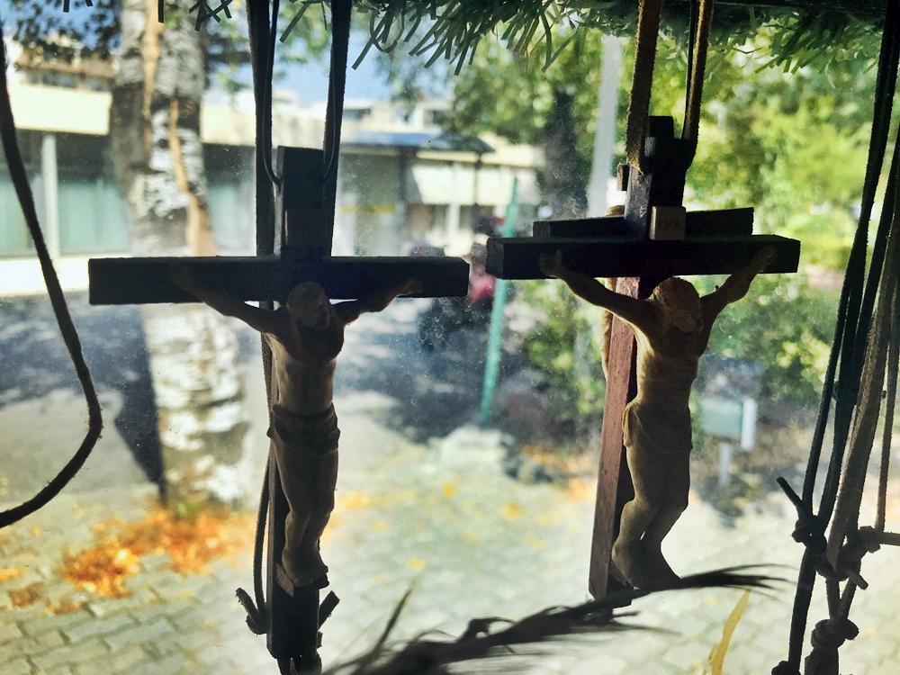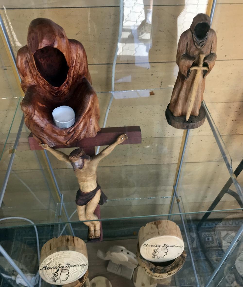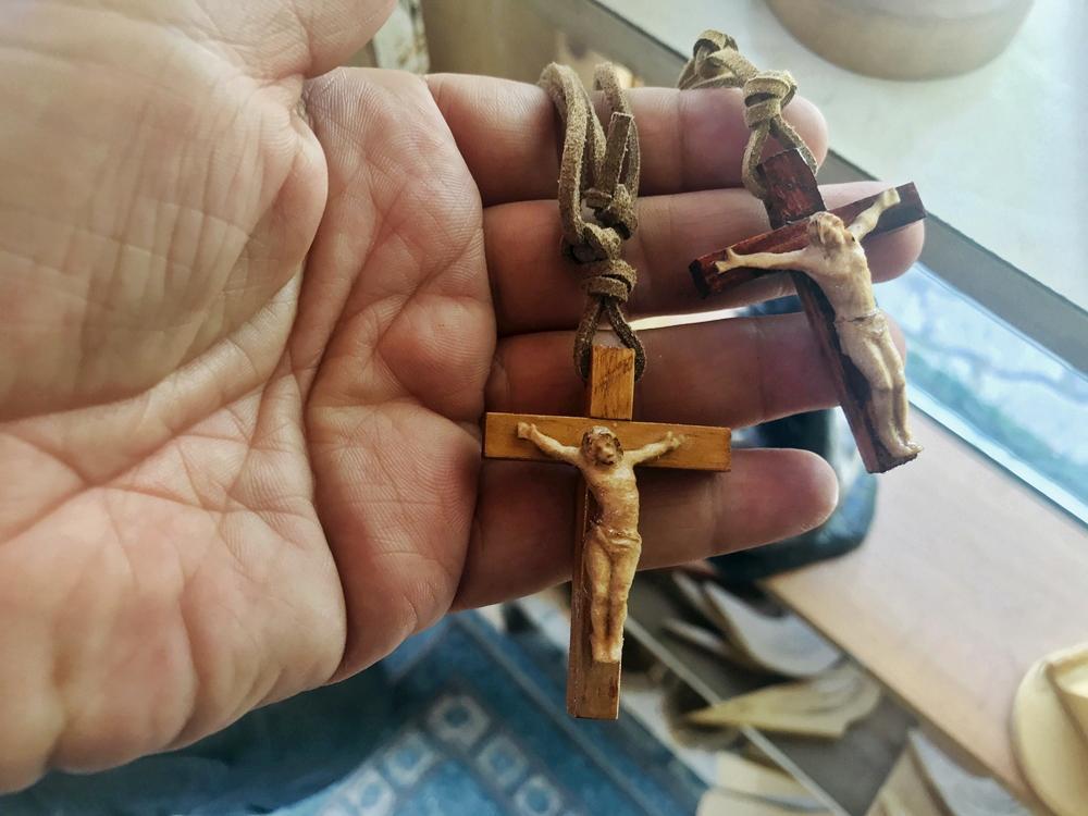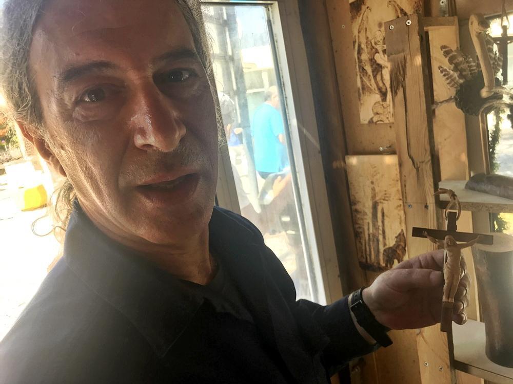 Έχω ασχοληθεί με τον σταυρό πολύ. Και λόγω πίστης, αλλά μου αρέσει πολύ σαν θέμα. Έχω κάνει πολλούς σταυρούς. Δεν είναι τυχαίο που ο Ιησούς ήταν μαραγκός. Η ξυλουργική είναι μια τέχνη της ταπεινότητας, σου δίνει ευκαιρία ενώ δουλεύεις να σκέφτεσαι, είναι πολύ ενδιαφέρουσα. Ταυτίζομαι γιατί μ’ αρέσει η ταπεινότητα. Θα ακουστεί μοναχικό και καταθλιπτικό, αλλά χρειάζεσαι κάποιες φορές να έχεις τον χρόνο σου με τον εαυτό σου και η ξυλογλυπτική σε κάνει να τραβιέσαι στον εαυτό σου κάνοντας παράλληλα τέχνη. Κάνω όμως και θέματα που μπορεί κάποιοι να κατακρίνουν. Κάνω μάγους, απόκοσμες φιγούρες, έκανα αυτό το ρολόι που το κρατάει ο χάροντας. Είναι και λίγο γκόθικ. Μου αρέσουν όμως και τα χαρούμενα θέματα, όπως τα ζωάκια, ρακούν και λαγουδάκια, που τα σκαλίζω σε κομμάτια δέντρων.
