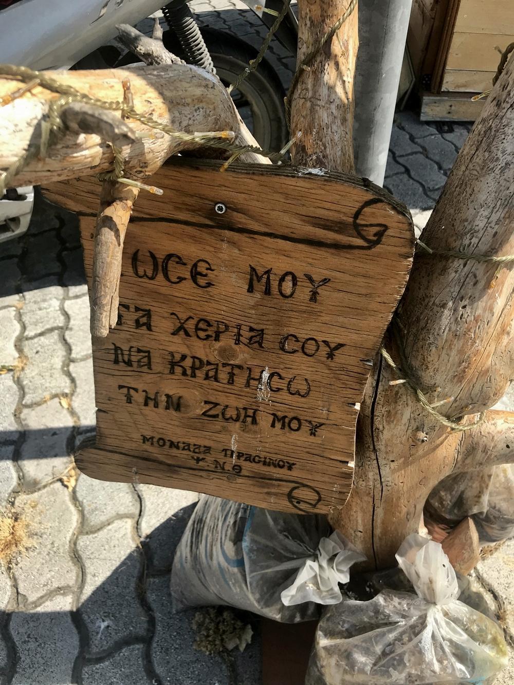 Είναι οικολογική γιατί θα πάρεις ξύλο από ένα δάσος που κάηκε, από τα μαδέρια της θάλασσας. Δεν κόβεις, ουσιαστικά ανακυκλώνεις, κάνεις επανάχρηση κατά κάποιο τρόπο. Εδώ, ας πούμε, κλαδεύουμε ελιές, από εκείνα τα κομμάτια ζητάω και τα χρησιμοποιώ, από το να γίνουν πριονίδι. Εδώ στην Μονάδα Πρασίνου πιστεύουμε στην ανακύκλωση.