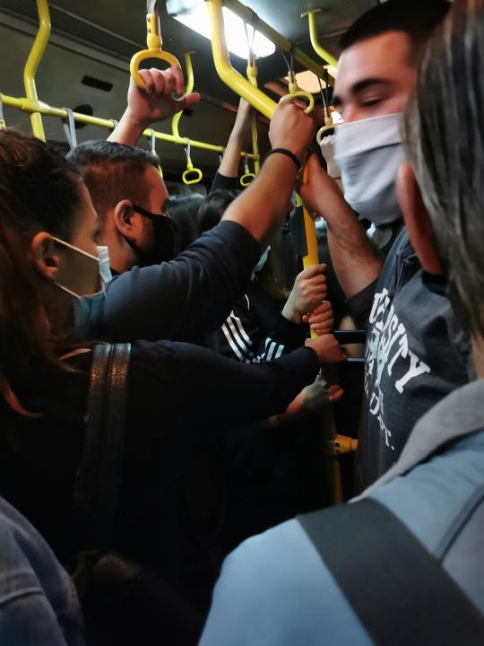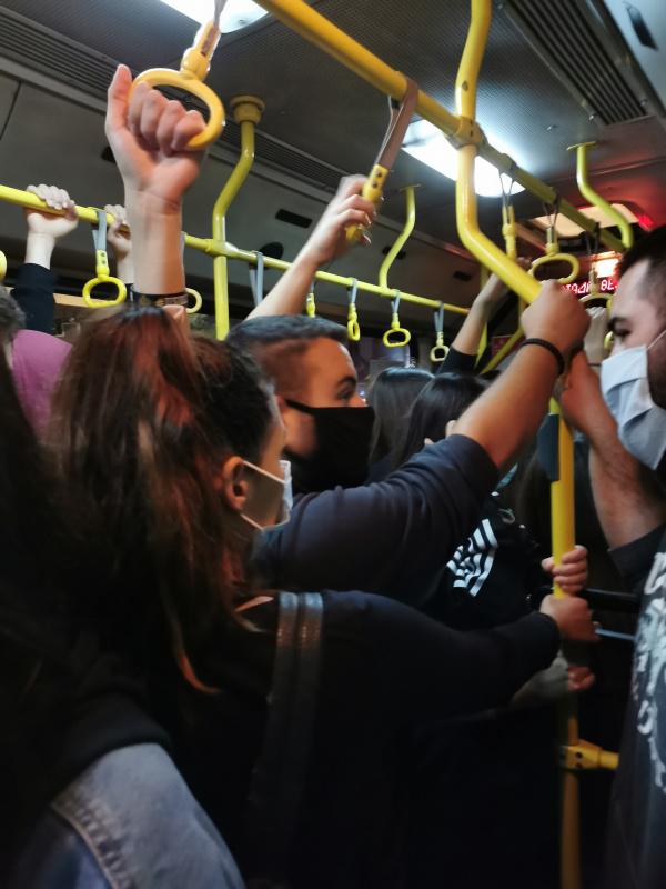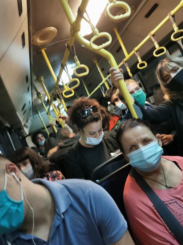 Παρά την ραγδαία αύξηση των κρουσμάτων στην Ελλάδα, εικόνες συνωστισμού σημειώνονται καθημερινά σε λεωφορεία του ΟΑΣΘ στη Θεσσαλονίκη.