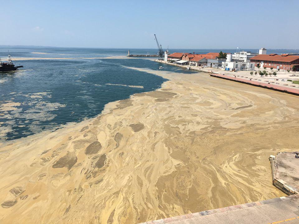 Τεράστιες ποσότητες φυτοπλαγκτόν καλύπτουν ακόμη όλο το μήκος της παραλίας της Θεσσαλονίκης, από το ύψος του λιμανιού, αναδύοντας έντονη δυσοσμία ενώ απογοητευτική είναι ακόμη η εικόνα του Θερμαϊκού.