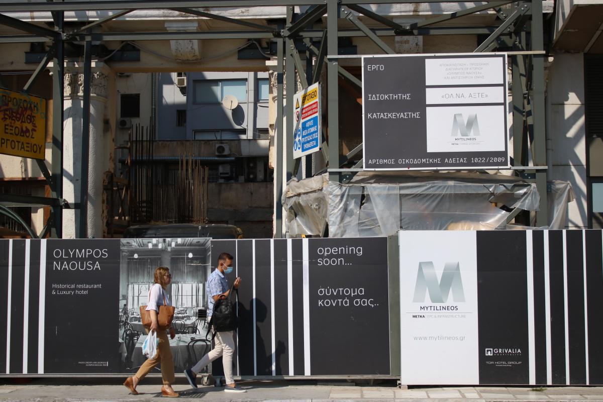 Διώροφο κτίριο που σημαδεύτηκε από το εστιατόριο-ορόσημο που στέγασε, το θρυλικό “Όλυμπος-Νάουσα”. Κτίστηκε το 1925 από τον αρχιτέκτονα Ζακ Μοσέ, για να στηρίξει τα «Ηνωμένα Ζυθοποιεία Όλυμπος-Νάουσα» και οι τέσσερις συνέταιροι, οι Θωμάς Τσελίδης, Εμμανουήλ Εμμανουηλίδης, Αντώνης Γεωργακόπουλος και Αριστοτέλης Σφήκας εγκαινιάζουν το εστιατόριο το 1927 με το όνομα «Όλυμπος-Νάουσα», το οποίο διέκοψε τη λειτουργία του το 1994. Το κτίσμα έχει κηρυχθεί από το ΥΠΕΧΩΔΕ και από το ΥΠΠΟ, έργο τέχνης και ιστορικό διατηρητέο μνημείο από το 1993 (ΦΕΚ. Αρ.φ.564/1993).
