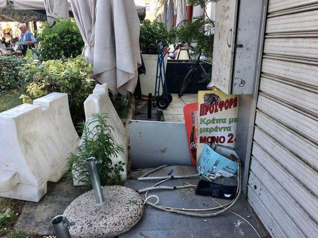 Σε αυτή την πλατεία το κόστος των τραπεζοκαθισμάτων που πληρώνουν ή και δεν πληρώνουν είναι 320 ευρώ το τ.μ. Πιο ακριβά από οπουδήποτε αλλού στην πόλη. Που πηγαίνουν αυτά τα χρήματα αλήθεια; Ένα κομμάτι στην καθαριότητα. Ναι η πλατεία σκουπίζεται καθημερινά. Φτάνει όμως αυτό; Τι γίνεται με την υπόλοιπη εικόνα της;