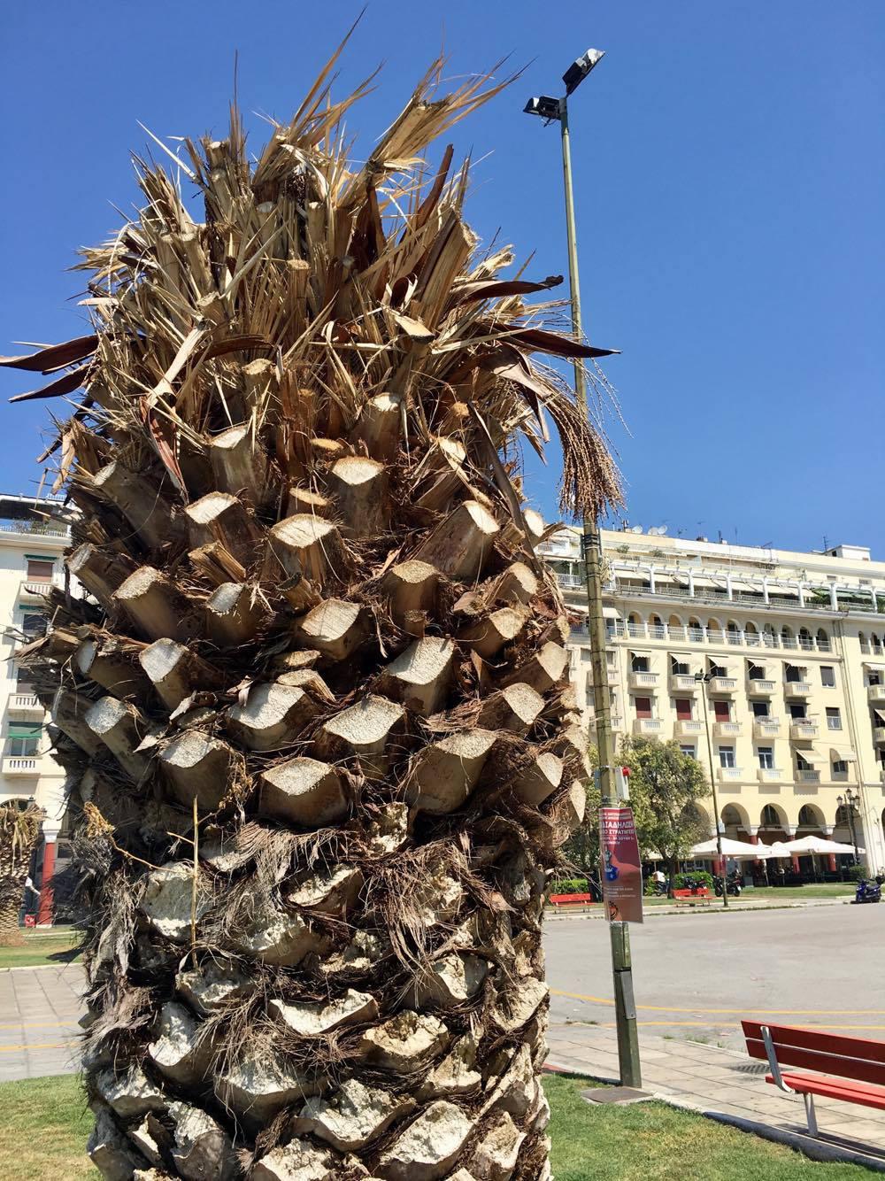 Θα δεις χορτάρι μαραμένο στο μεγαλύτερο μέρος της πλατείας και περισσότερα από δέκα δέντρα κομμένα από τους κορμούς να χάσκουν άδεια κουφάρια και να σκοντάφτουν πάνω τους παιδιά και ηλικιωμένοι. Θα δεις και φοίνικες νεκρούς από το χειμώνα.