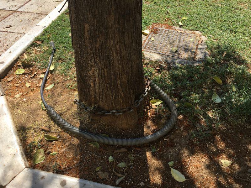 Θα δεις λουκέτα πολλά σε διάφορα σημεία από ανθρώπους που τη χρησιμοποιούν για να ασφαλίζουν τα πράγματα τους, τα έπιπλα τους, τα μηχανάκια τους. Δεν θα δεις ποτέ κανέναν να γράφει τα μηχανάκια που είναι παρκαρισμένα επάνω της.