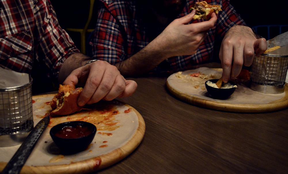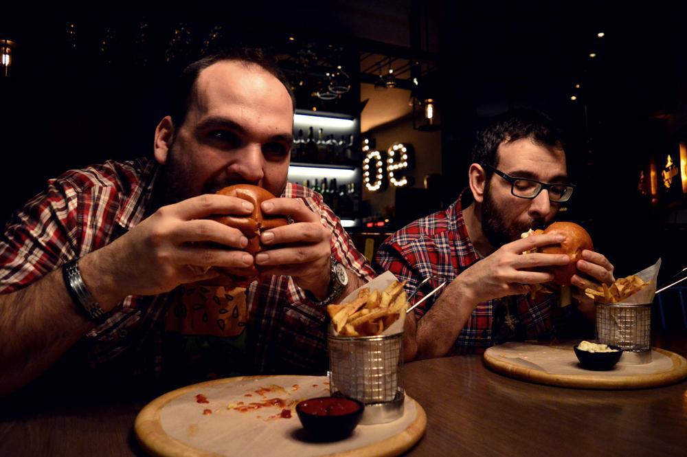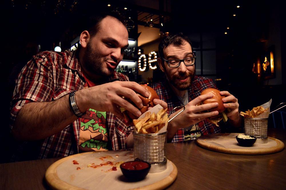 Μιχάλης: Και η έκρηξη που αναφέρουμε δεν είχε να κάνει ακριβώς με το ξεπέταγμα δύο ή τριών μπεργκεράδικων στην πόλη, που όντως έγινε και καλώς έγινε, αλλά στον αδιανόητο ρυθμό εμφάνισης της λέξης burger στους καταλόγους μαγαζιών κάθε είδους. Το μεξικάνικο εστιατόριο απέκτησε μπουρίτο burger, η ταβέρνα “τα 5 αδέλφια” έβαλε χάμπουργκερ για τους μικρούς της φίλους, μπαράκια που πρόσφεραν μέχρι χθες, μόνο ένα club sandwich, μέσα σε μια νύχτα εμφάνισαν και τρεις επιλογές για burger και η μία ήταν πάντα το super/ultra/xxl ή κάτι τέτοιο.